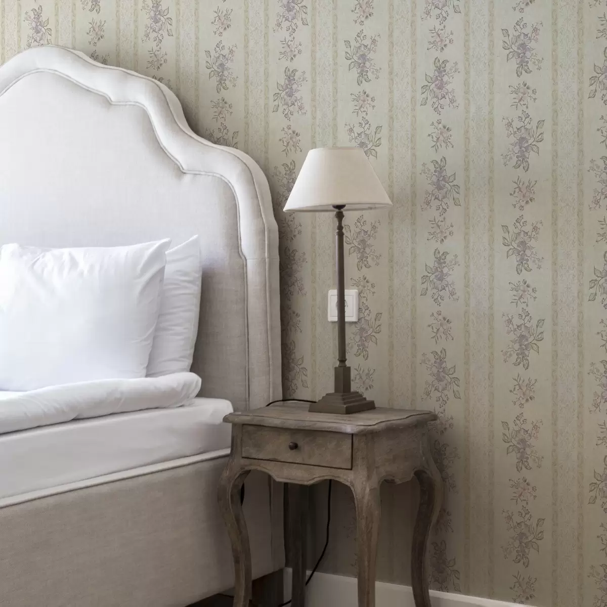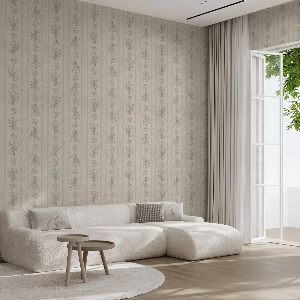 Papel tapiz Flores vintage sobre fondo a rayas con adorno Nr. a00440