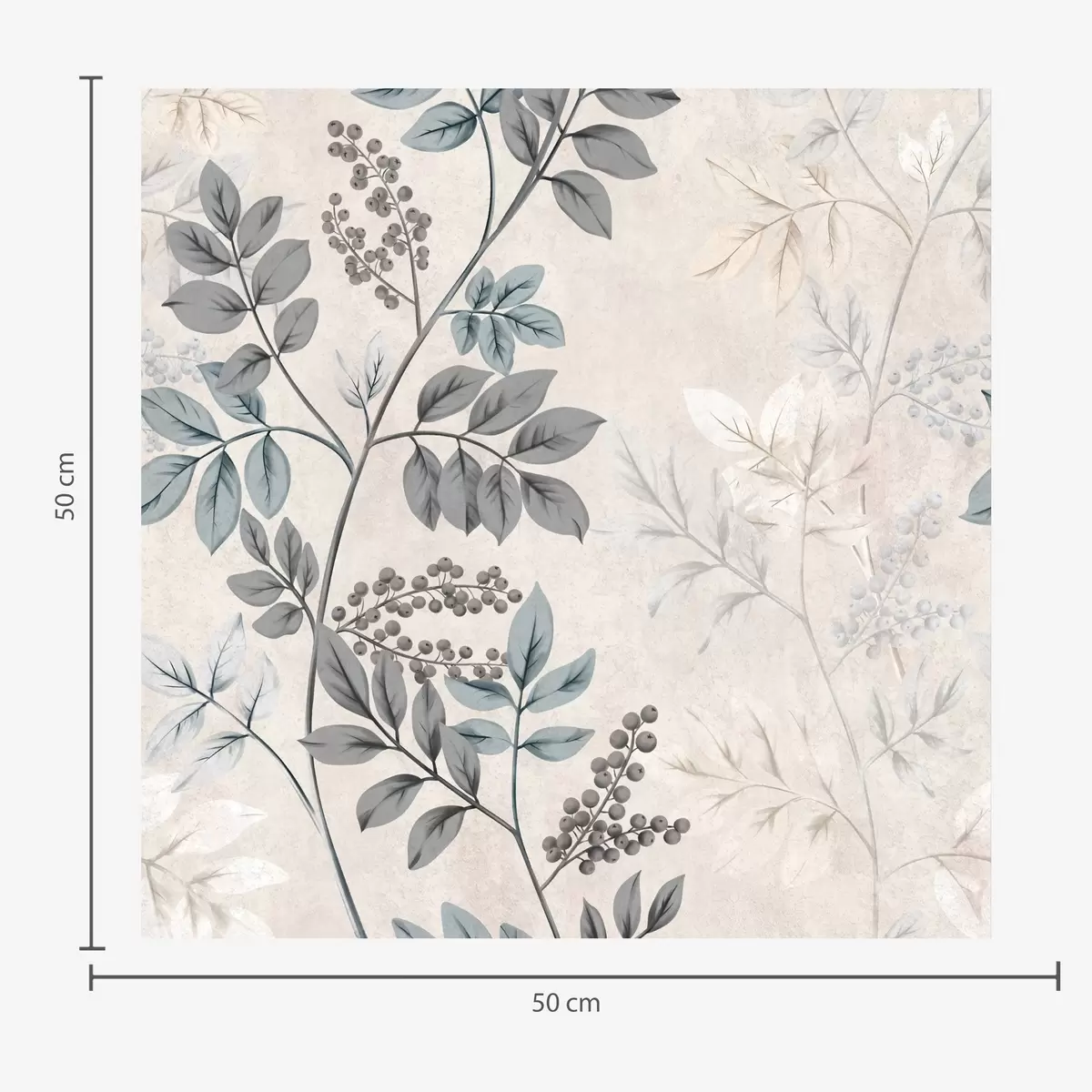 Papel tapiz Ramas de bayas en tonos pastel con hojas azul grisáceo Nr. a00443