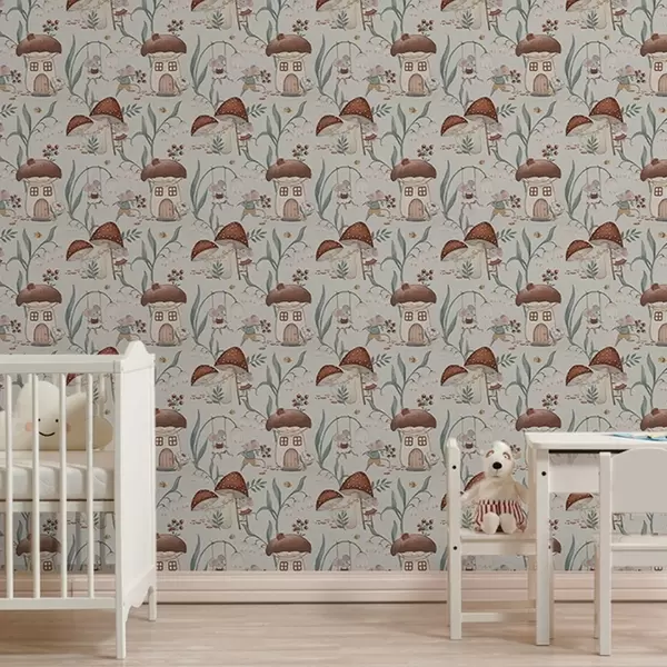 Papel tapiz Simpáticos ratones y setas sobre el fondo de un elegante paisaje forestal Nr. a00450