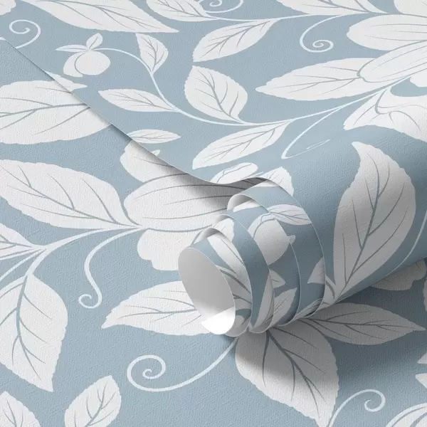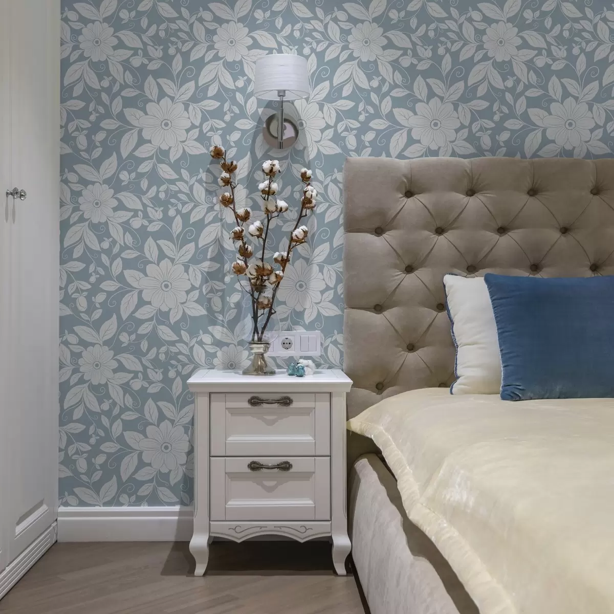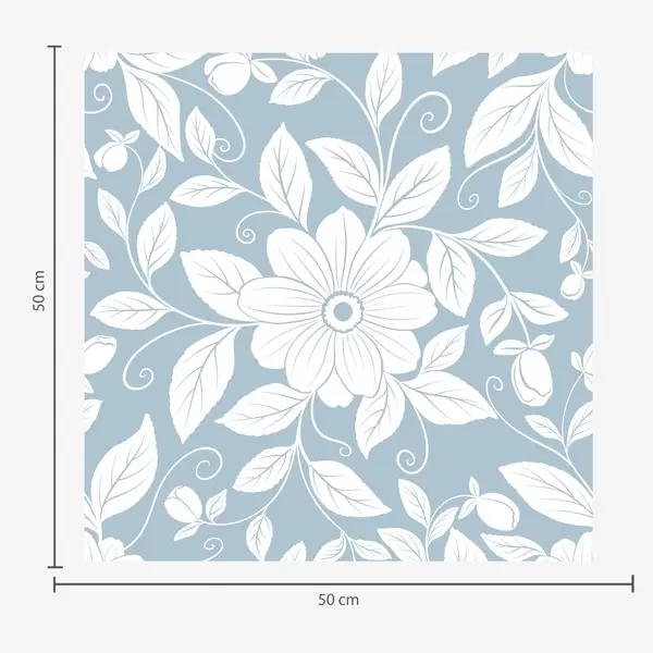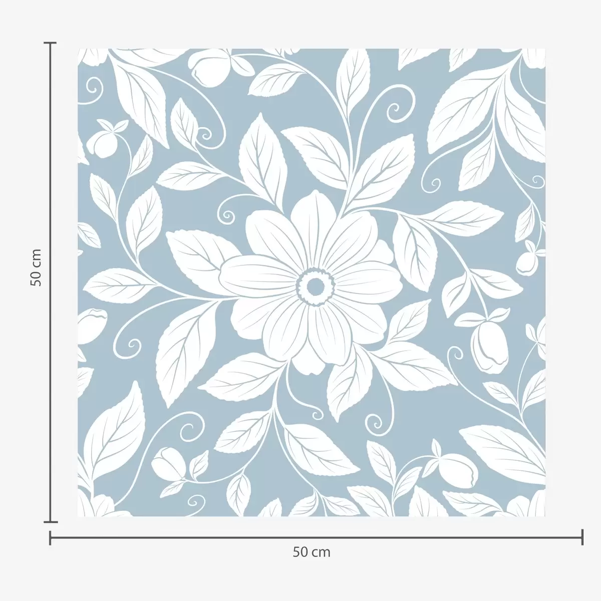 Papel tapiz Contorno floral blanco sobre fondo azul pastel Nr. a00452