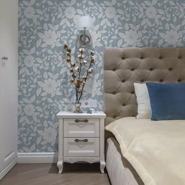 Papel tapiz Contorno floral blanco sobre fondo azul pastel Nr. a00452