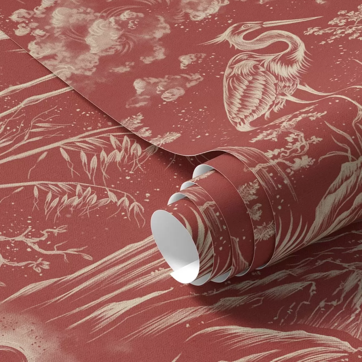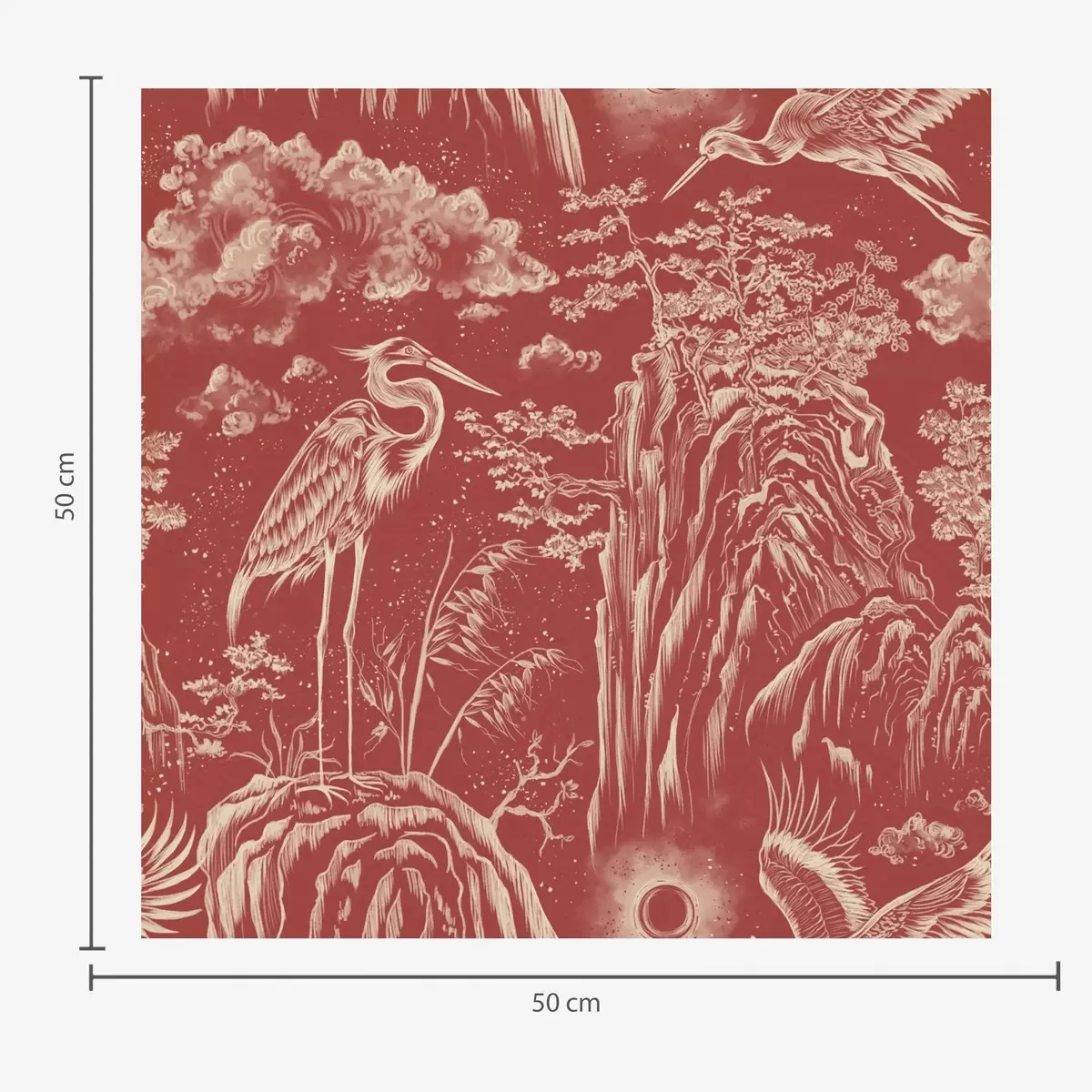 Papel tapiz Garzas, montañas y nubes al estilo del grabado japonés Nr. a00458