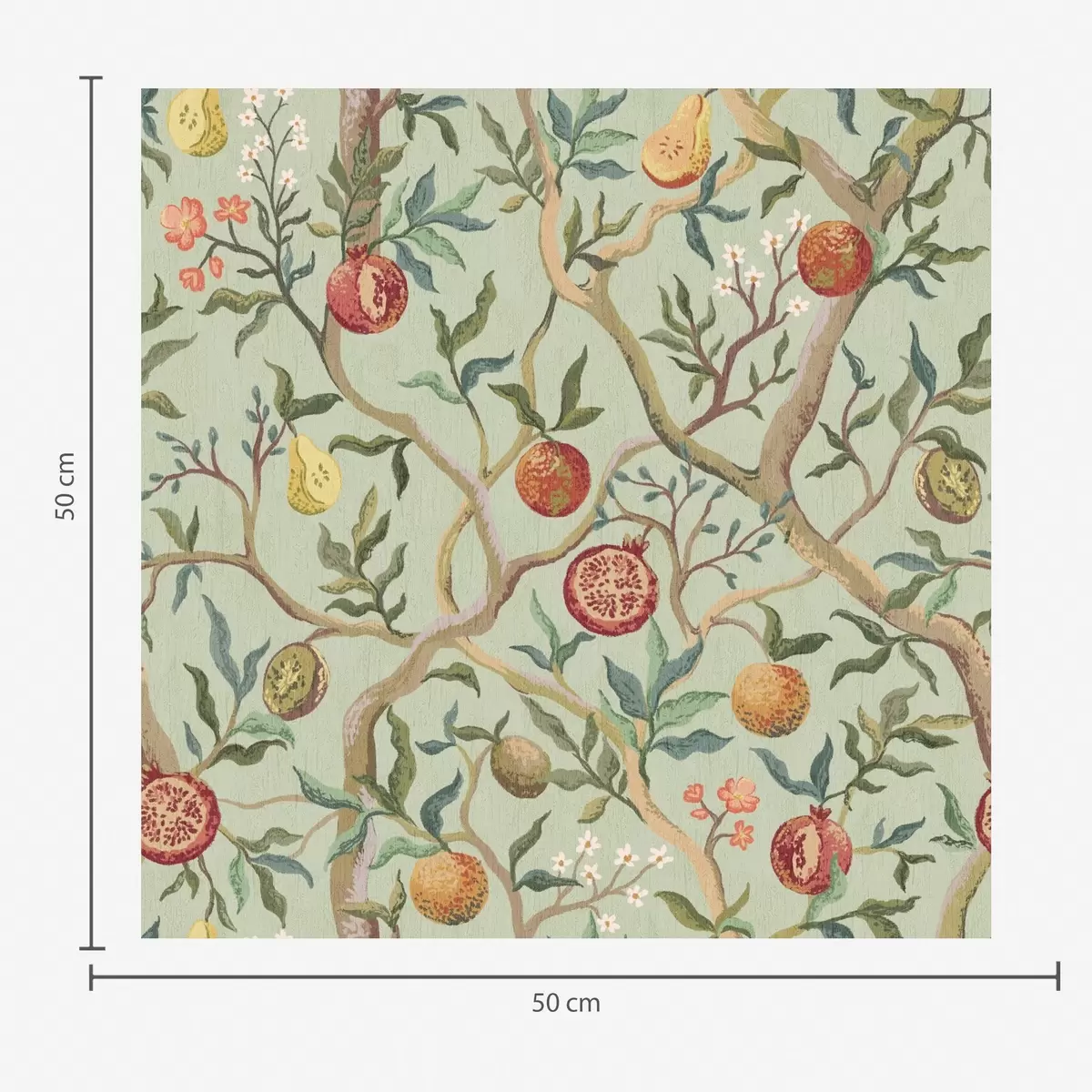 Papel tapiz Granadas, peras y flores sobre fondo verde pálido Nr. a00465
