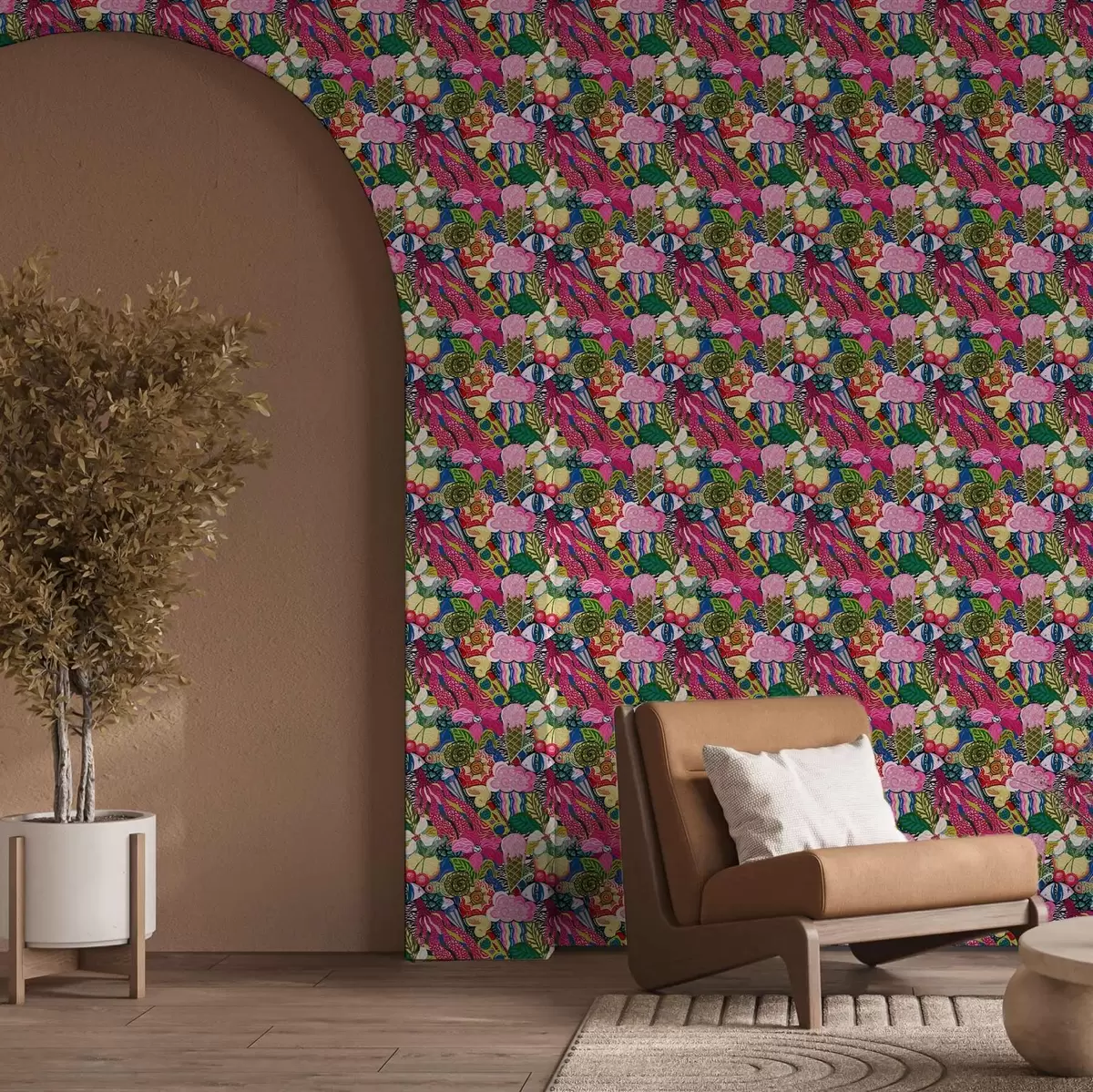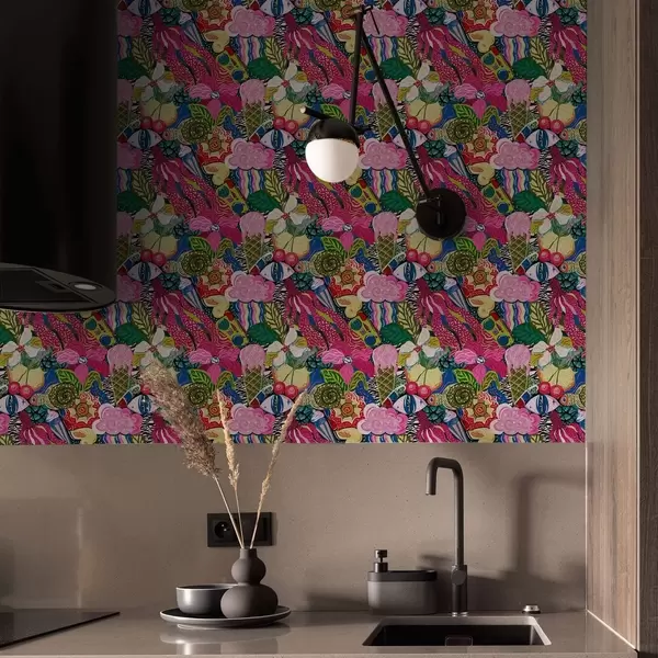 Papel tapiz Pop-art abstracto con flores, bayas y motivos Nr. a00471