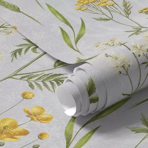 Papel tapiz Flores amarillas y verdes sobre fondo gris claro Nr. a00472
