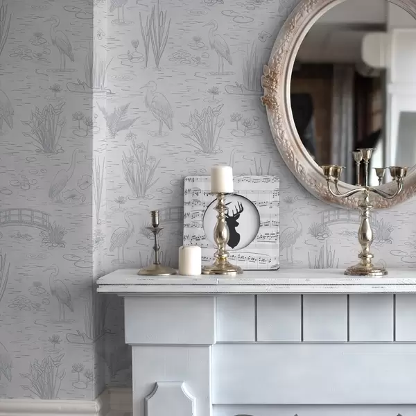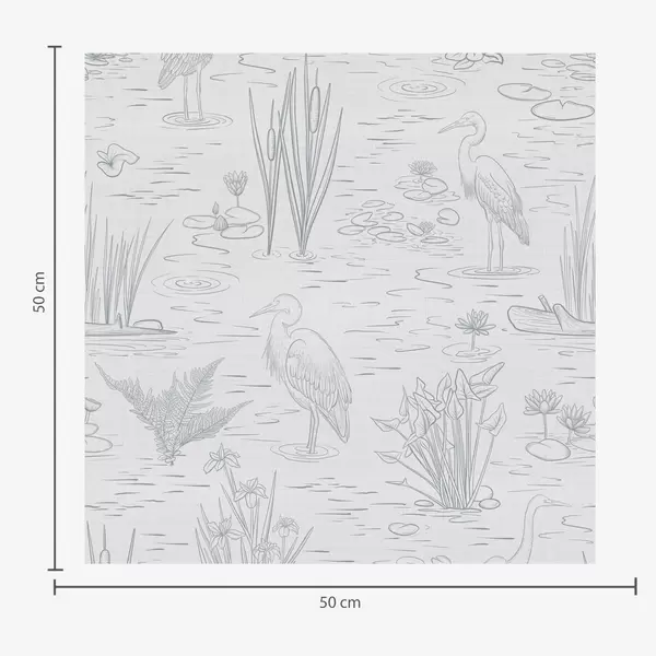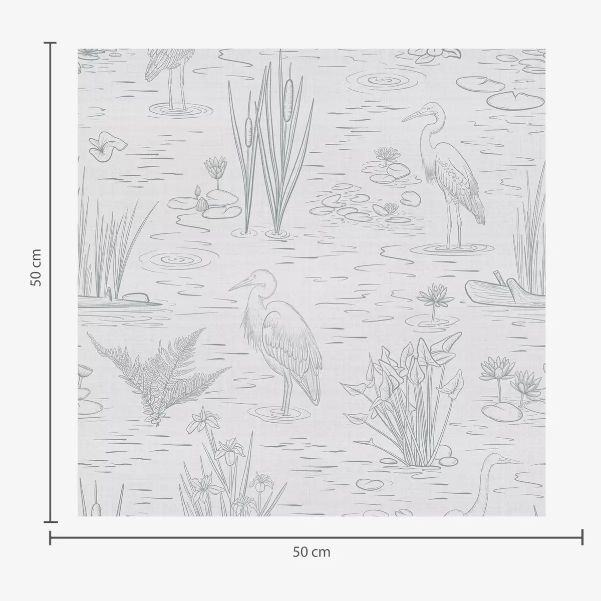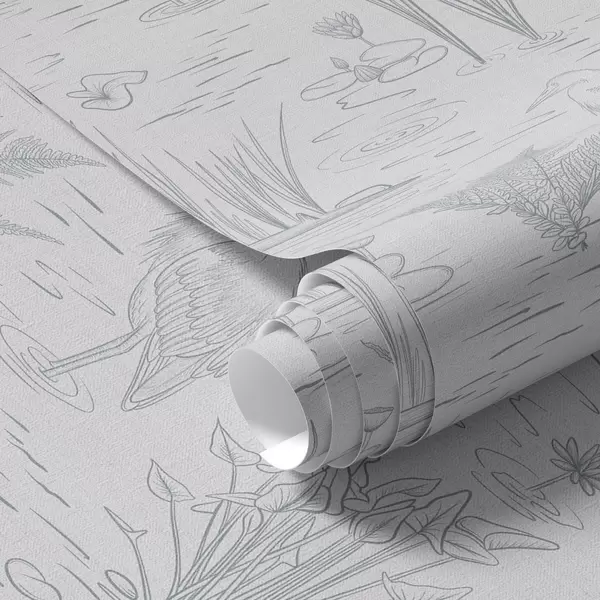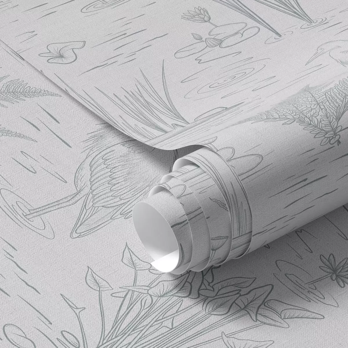Papel tapiz Dibujo de garzas y plantas acuáticas en tonos grises tranquilos Nr. a00479