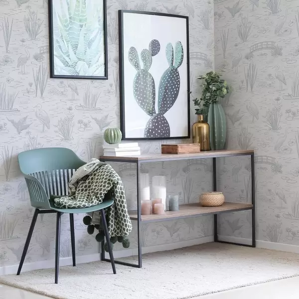 Papel tapiz Dibujo de garzas y plantas acuáticas en tonos grises tranquilos Nr. a00479