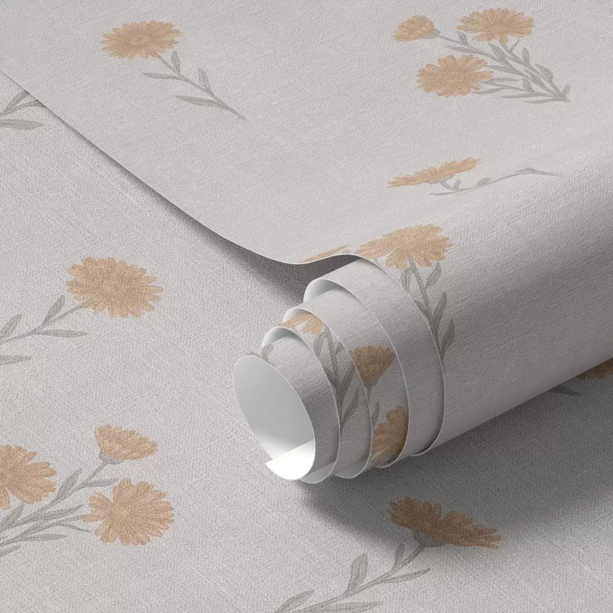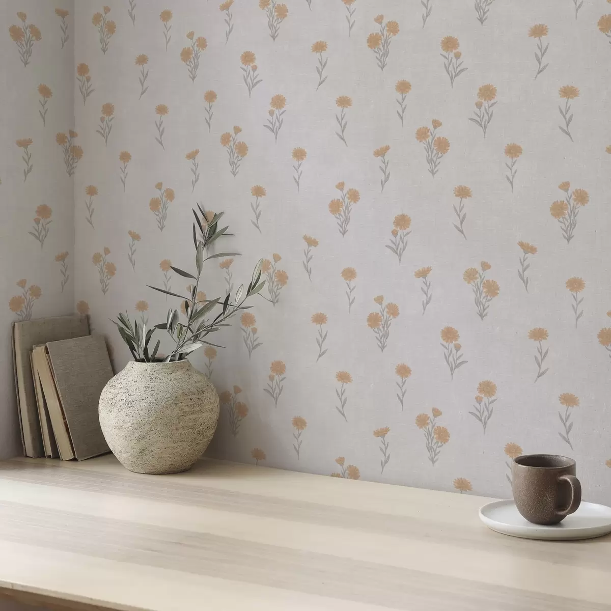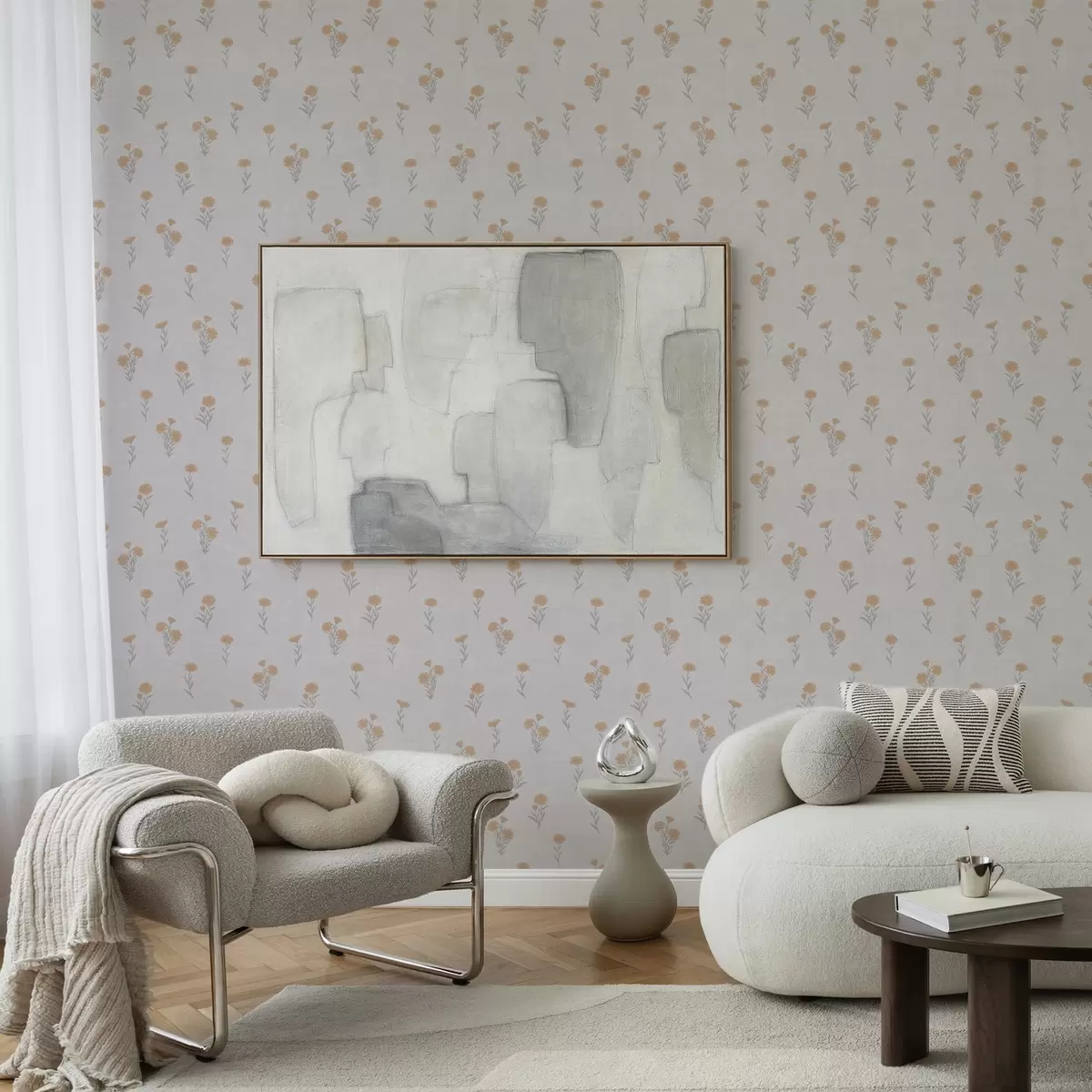 Papel tapiz Pequeñas flores naranjas sobre fondo gris claro Nr. a00486