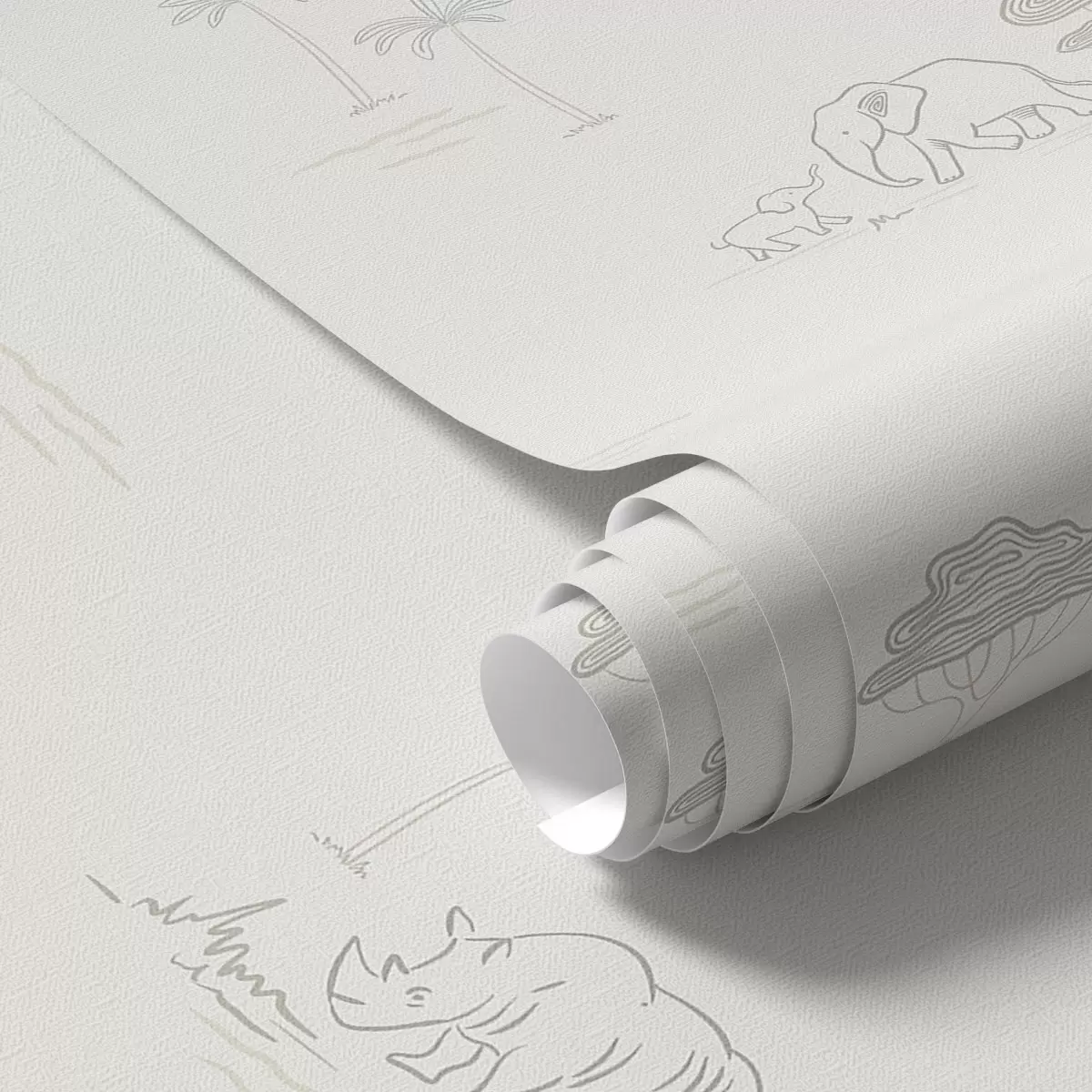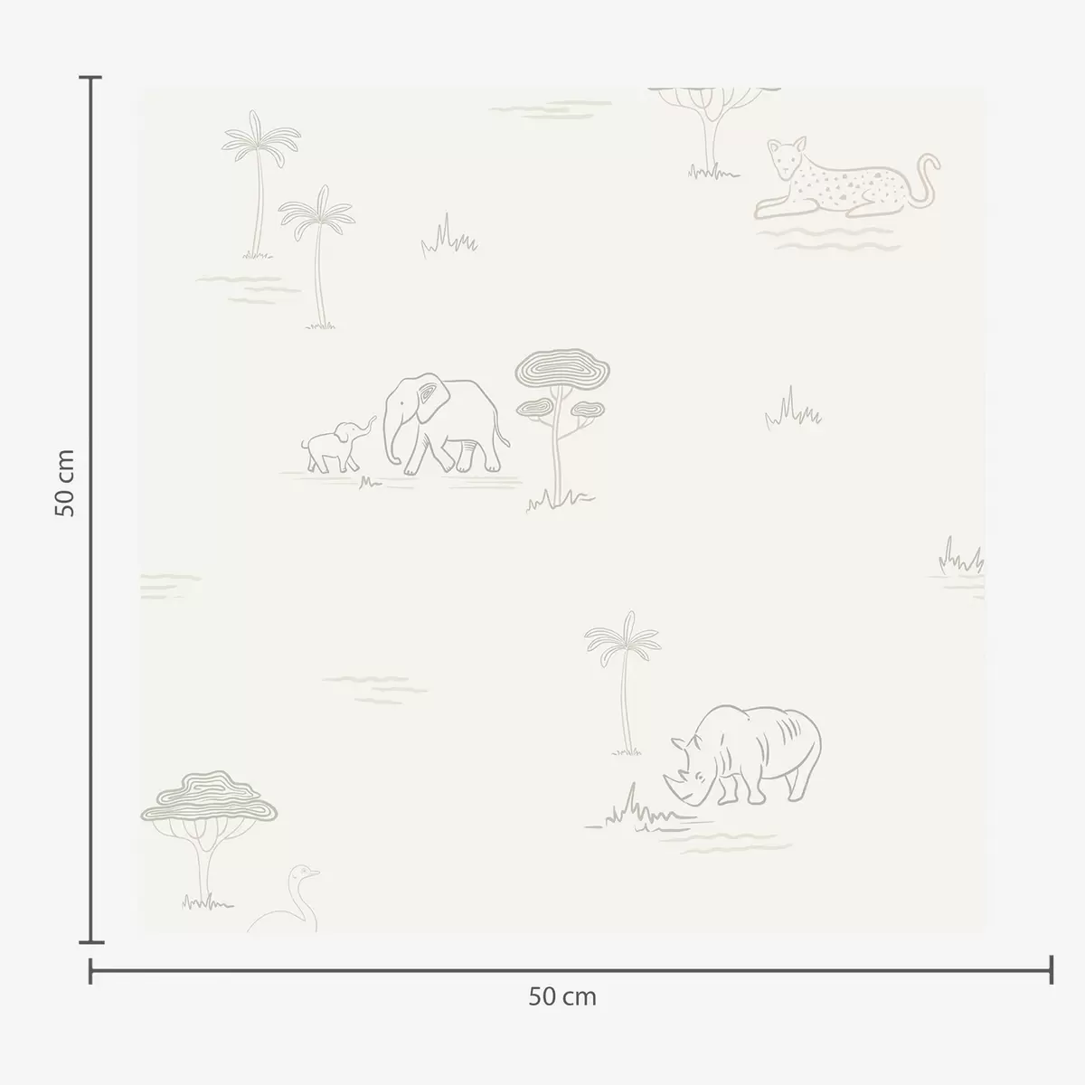 Papel tapiz Safari minimalista: elefantes, rinocerontes, leopardos y palmeras Nr. a00492