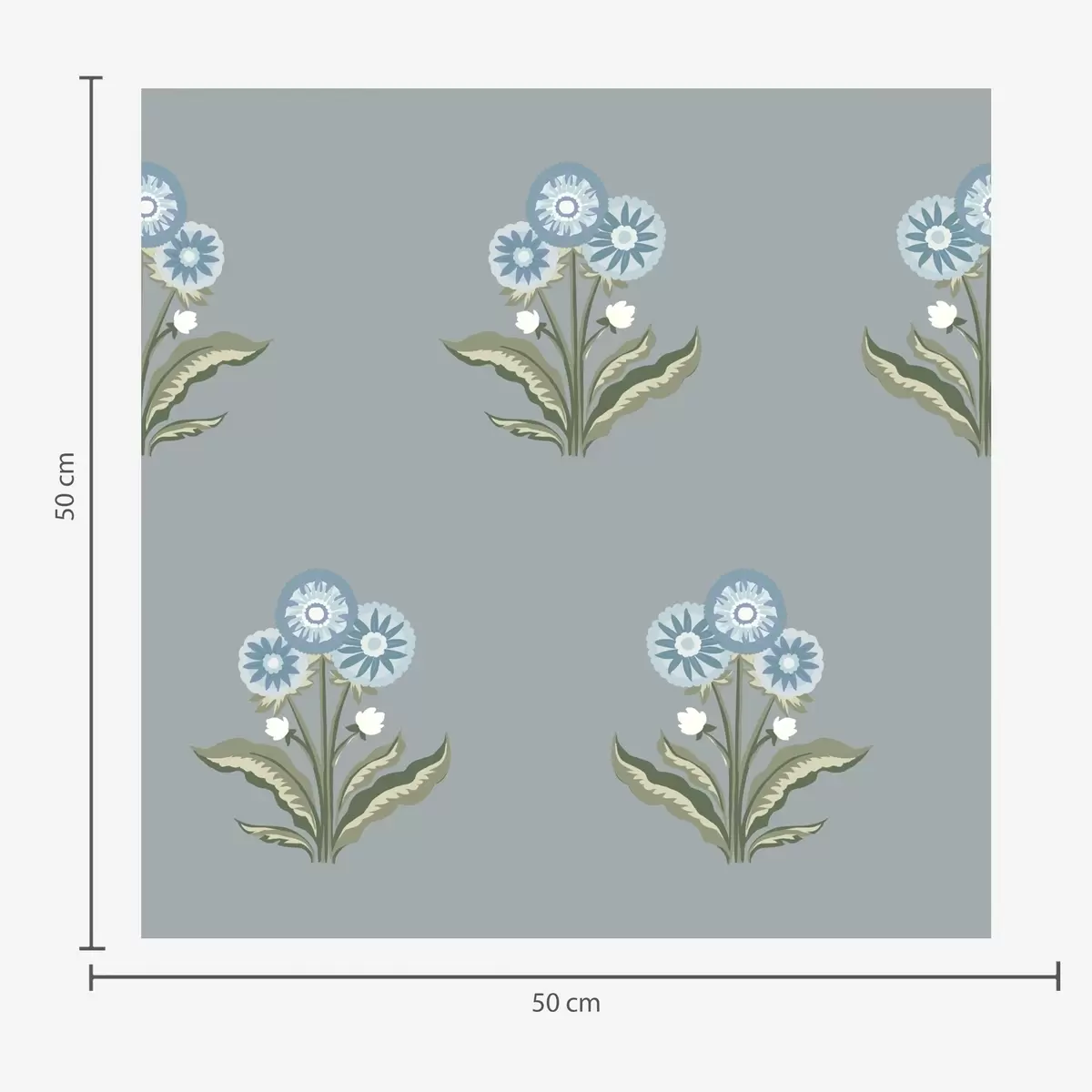 Papel tapiz Flores estilizadas sobre un fondo gris azulado, paleta de colores fríos Nr. a00494v1