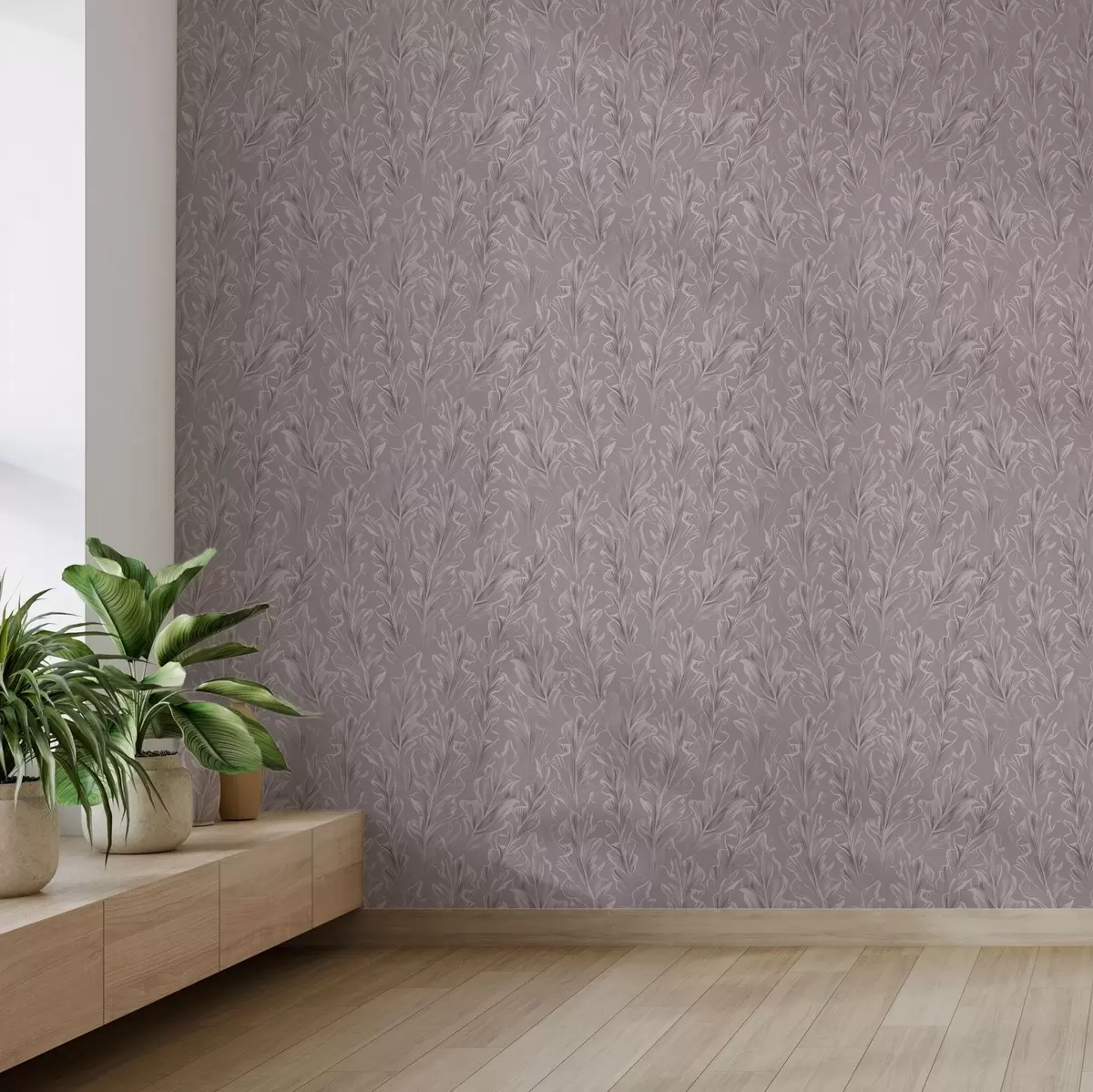 Papel tapiz Ondulantes olas frondosas en una paleta de colores rosa empolvado y beige Nr. a00495