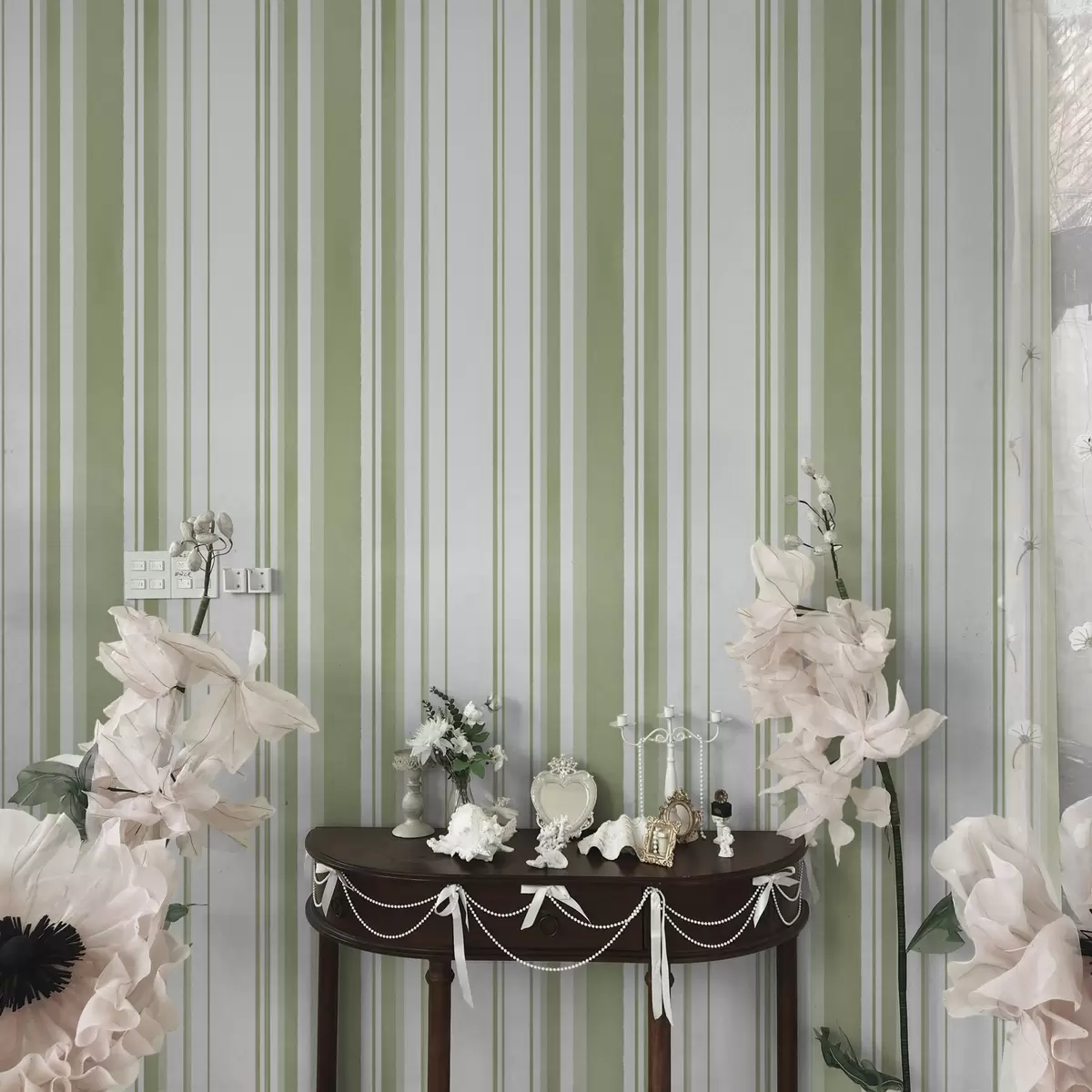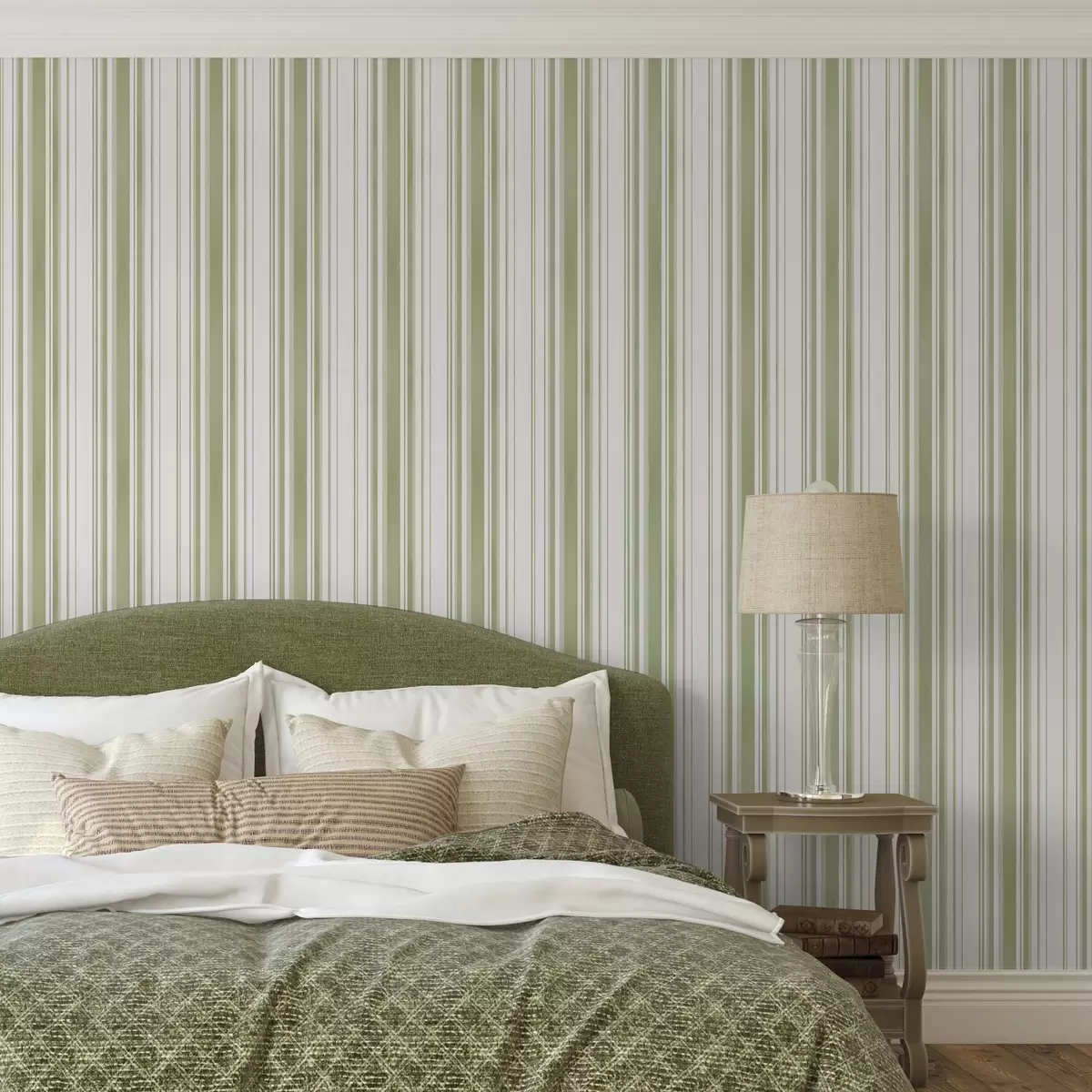 Papel tapiz Rayas verdes de anchura variable sobre fondo claro Nr. a00523