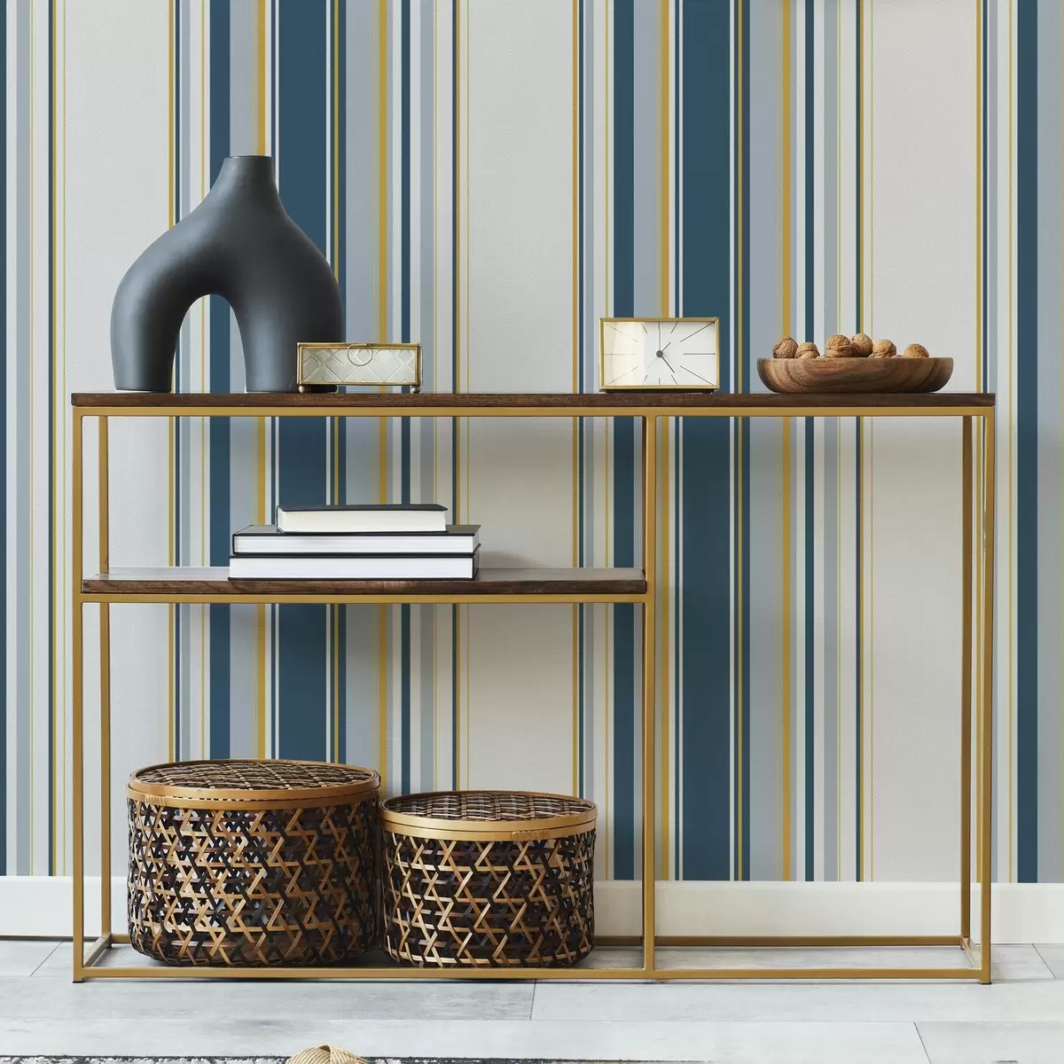 Papel tapiz Denso estampado de rayas verticales azules y amarillas Nr. a00524