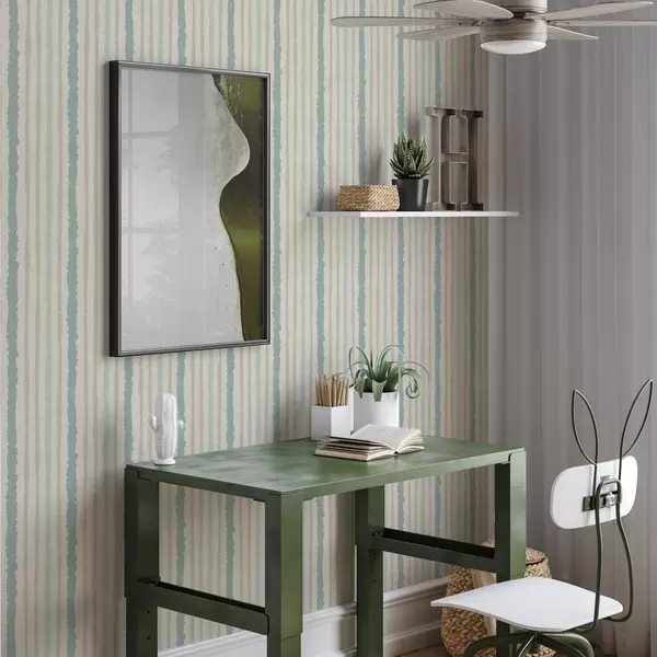 Papel tapiz Combinación de rayas desiguales turquesa y beige Nr. a00552