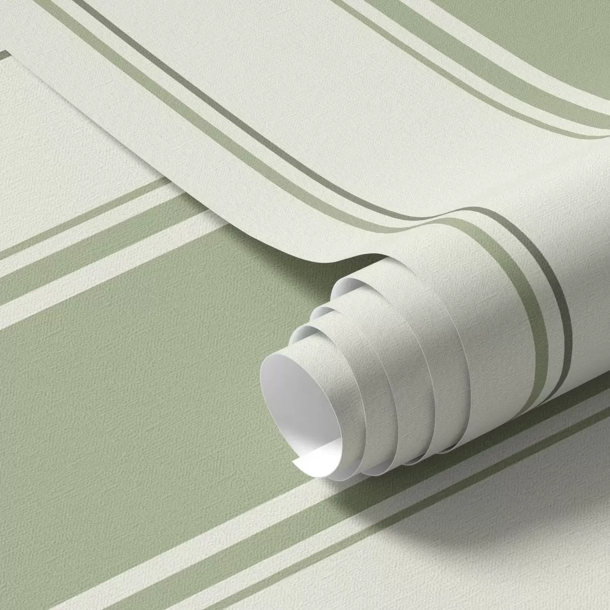 Papel tapiz Fondo crema con rayas anchas verde claro Nr. a00561