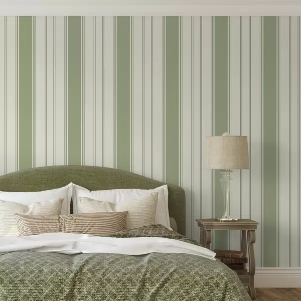 Papel tapiz Fondo crema con rayas anchas verde claro Nr. a00561