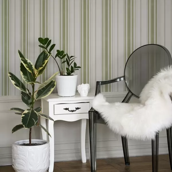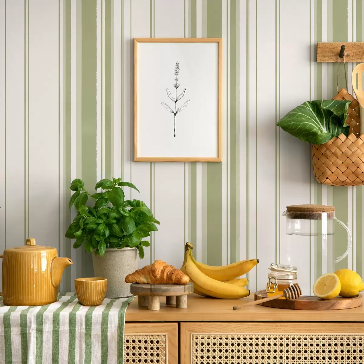 Papel tapiz Rayas verticales verdes de anchura variable Nr. a00565