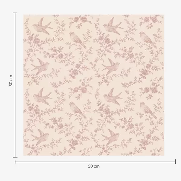 Papel tapiz Pájaros y rosas, estampado vintage en rosa empolvado Nr. a00587