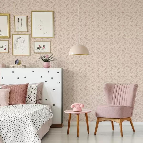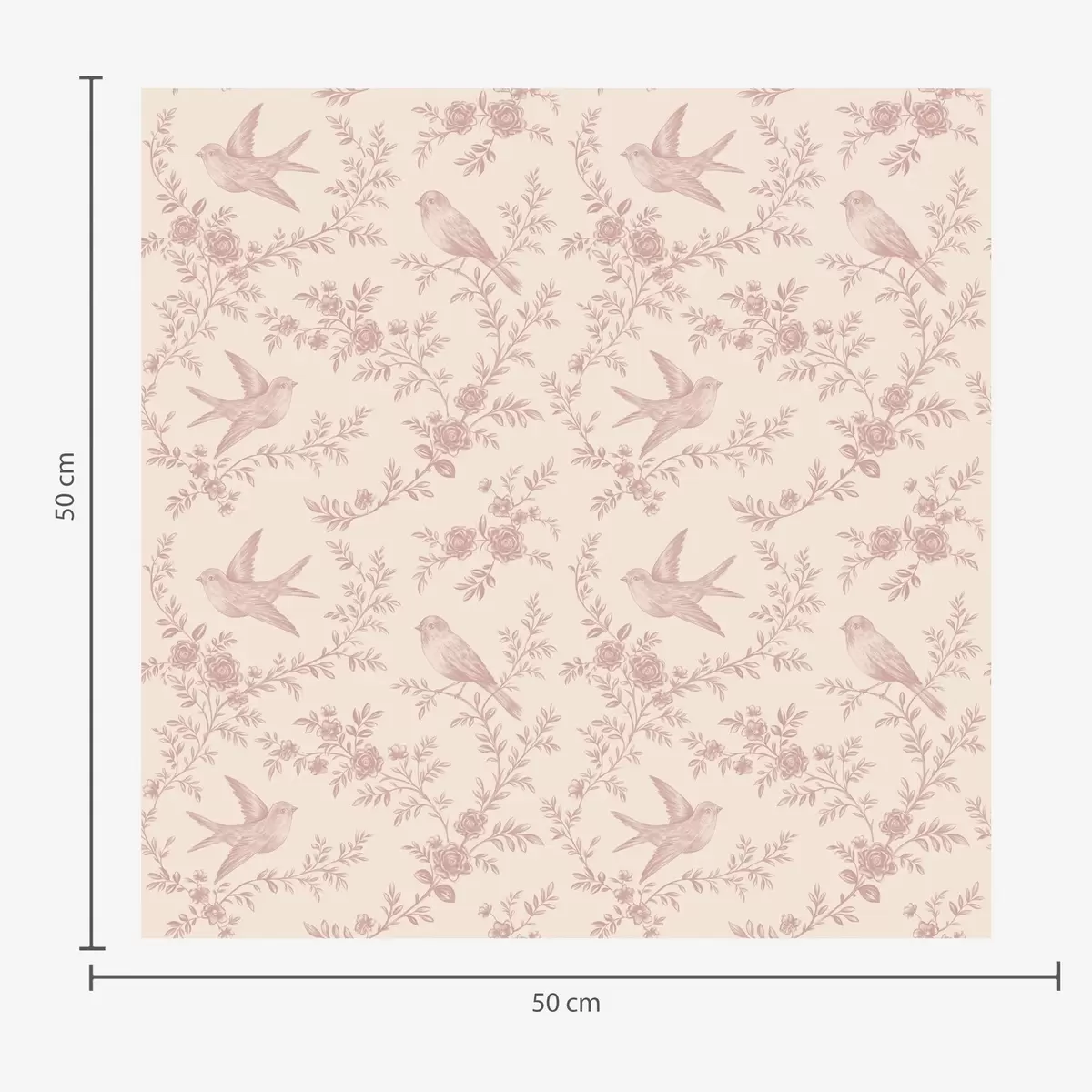 Papel tapiz Pájaros y rosas, estampado vintage en rosa empolvado Nr. a00587