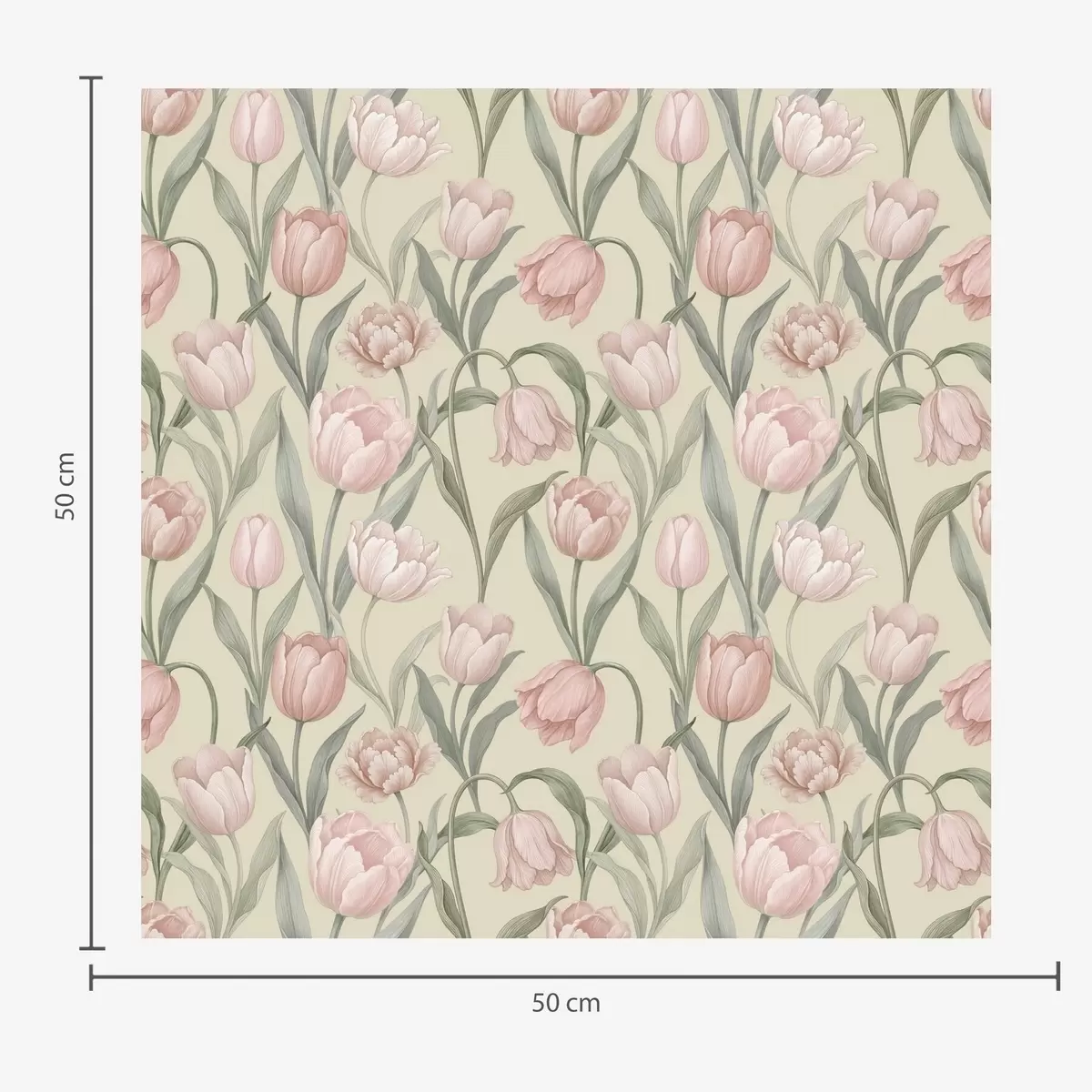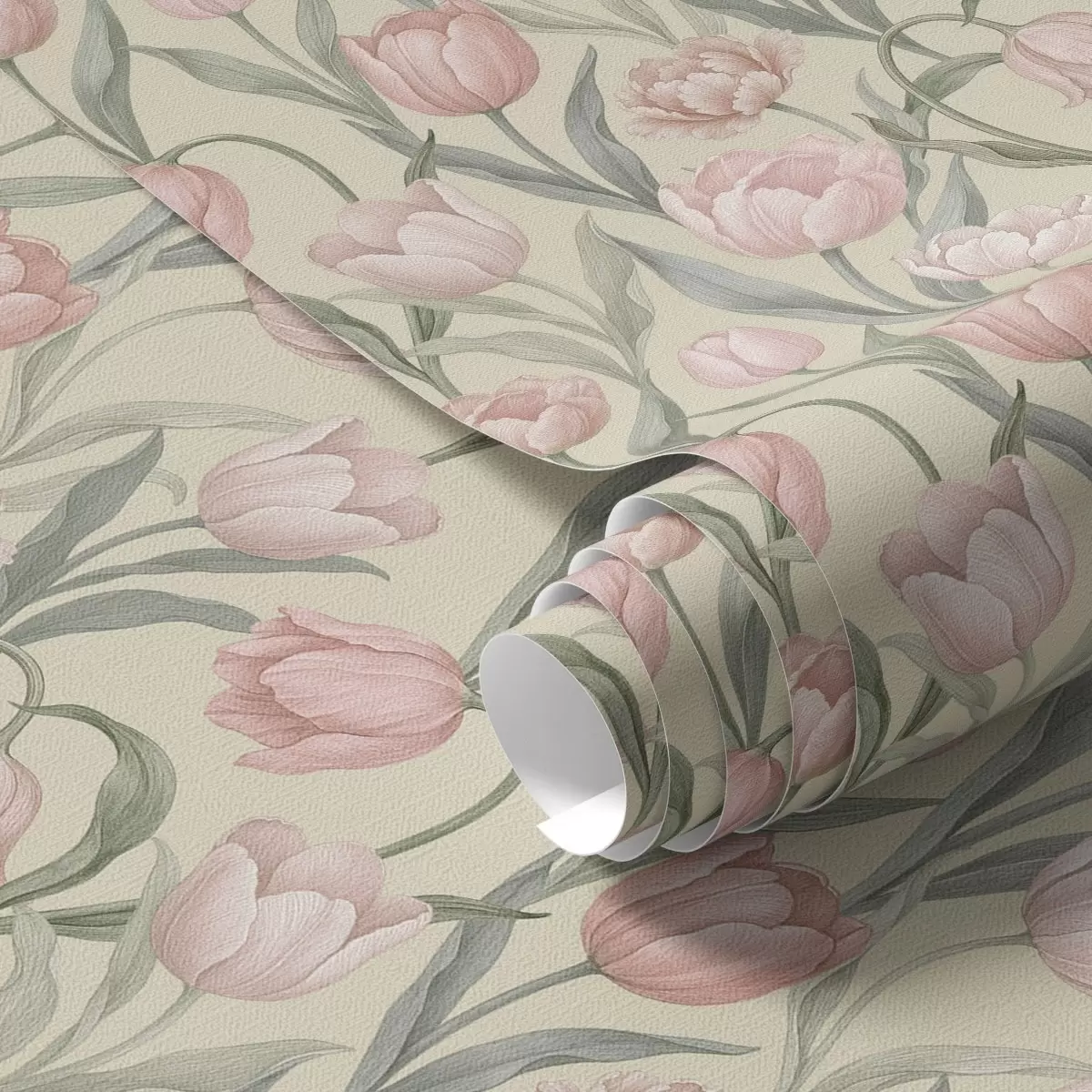 Papel tapiz Tulipanes rosa pálido sobre un suave fondo beige Nr. a00589