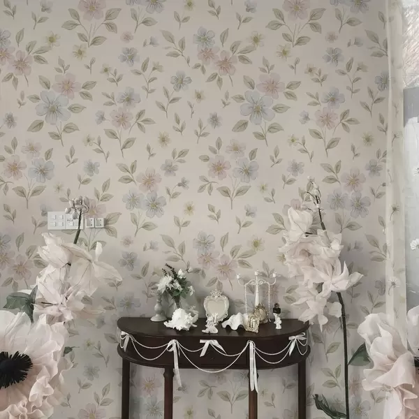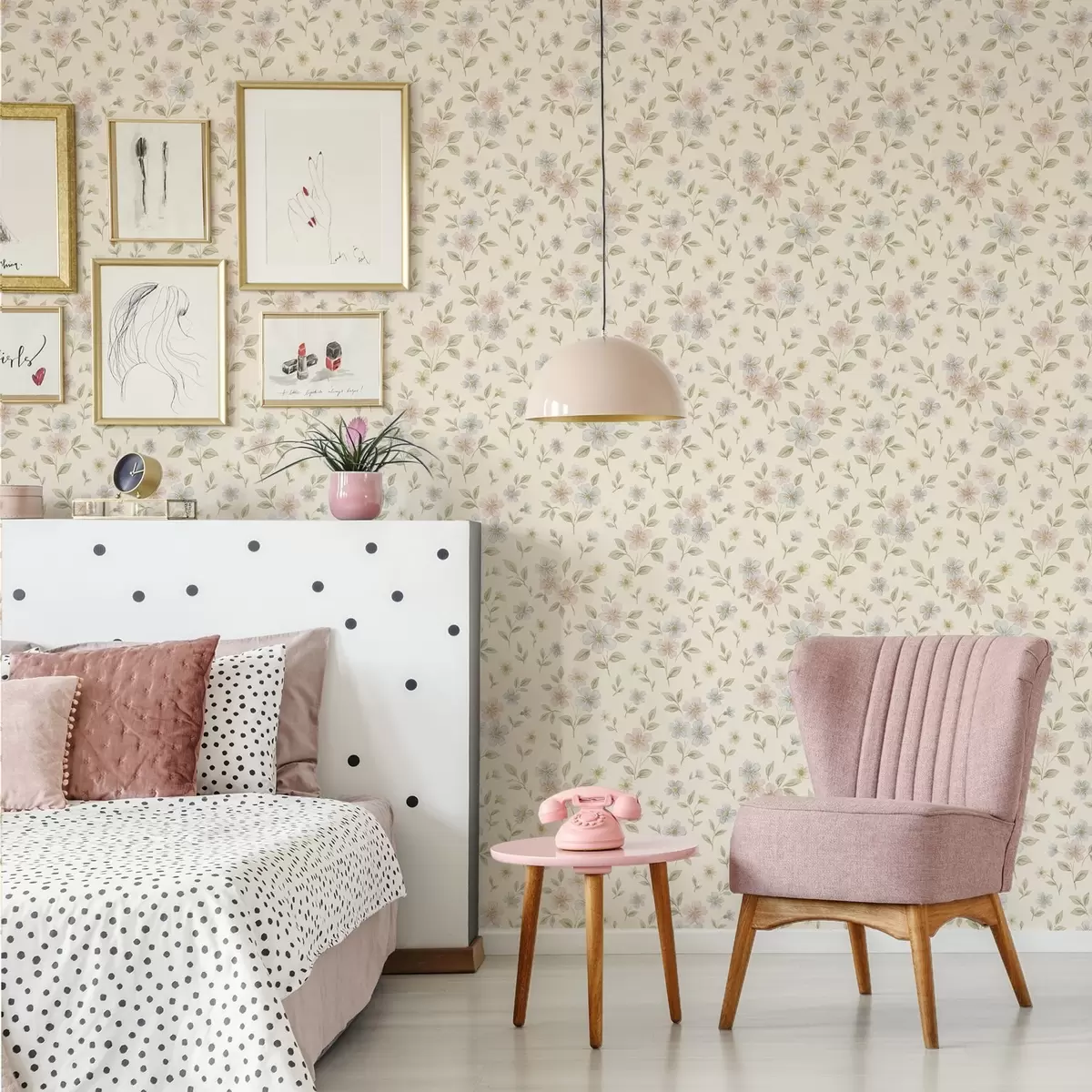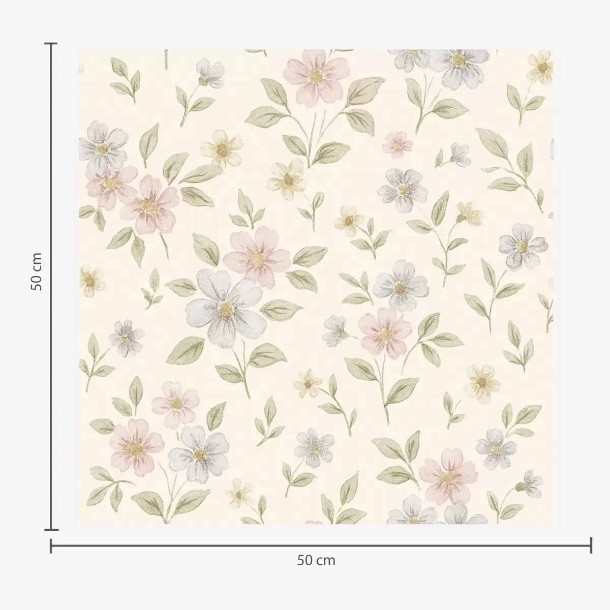 Papel tapiz Flores de campo en tonos pastel sobre fondo crema Nr. a00596
