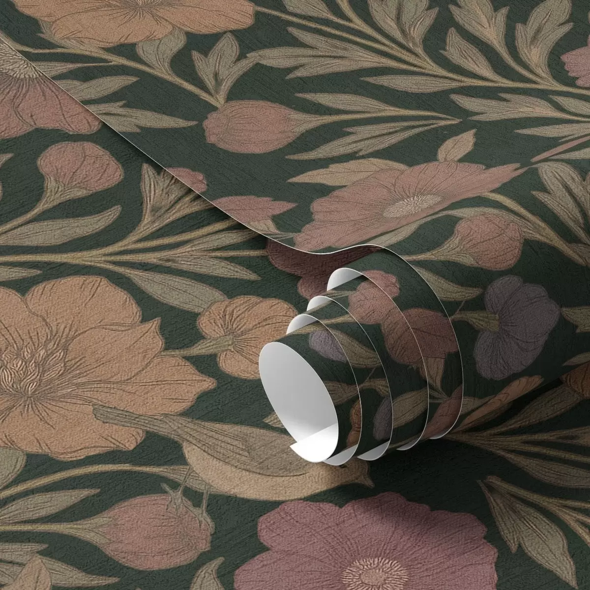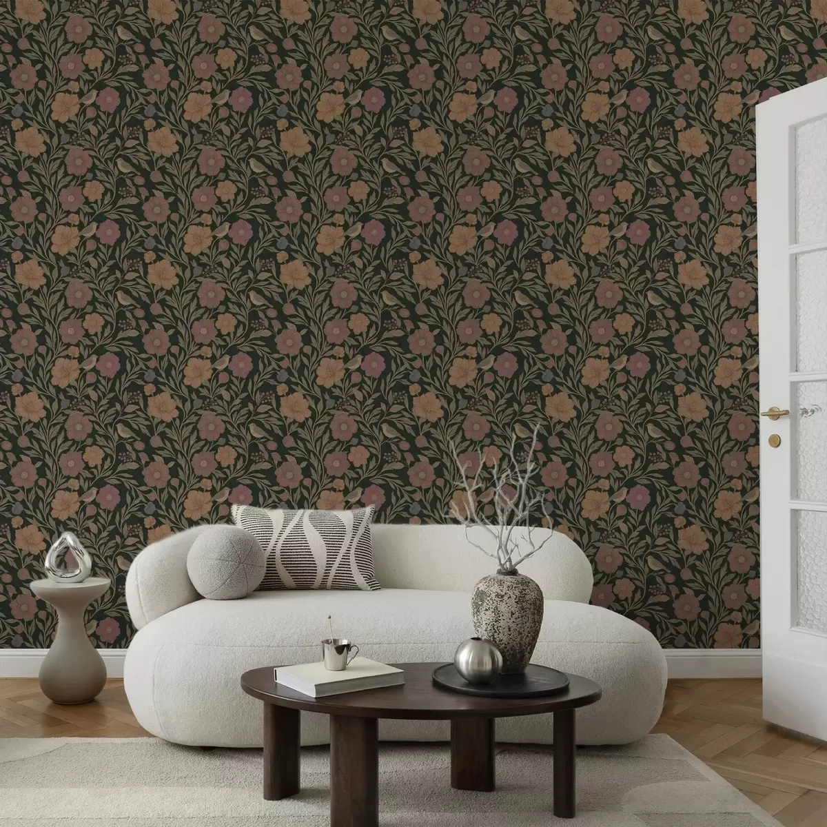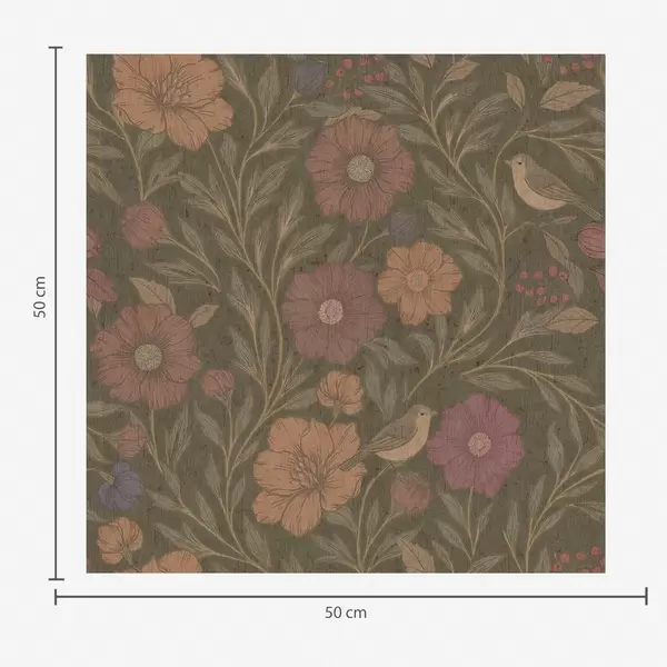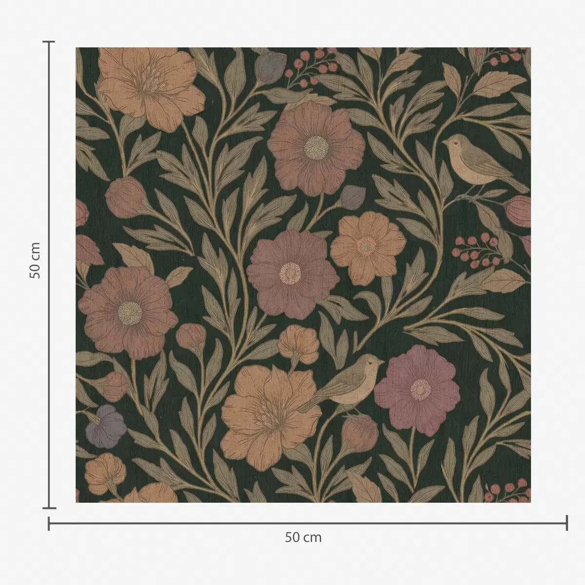 Papel tapiz Flores otoñales y pájaros sobre un fondo esmeralda intenso Nr. a00605v1
