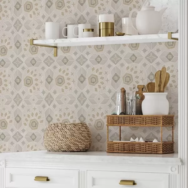Papel tapiz Patrón geométrico de mosaico en tonos beige cálidos Nr. a00606