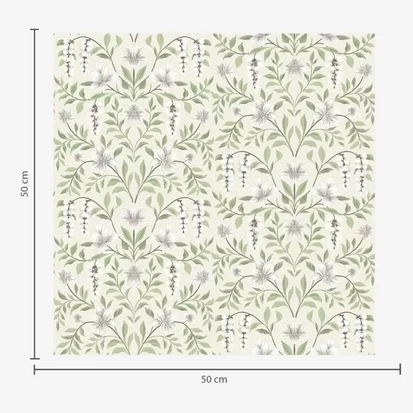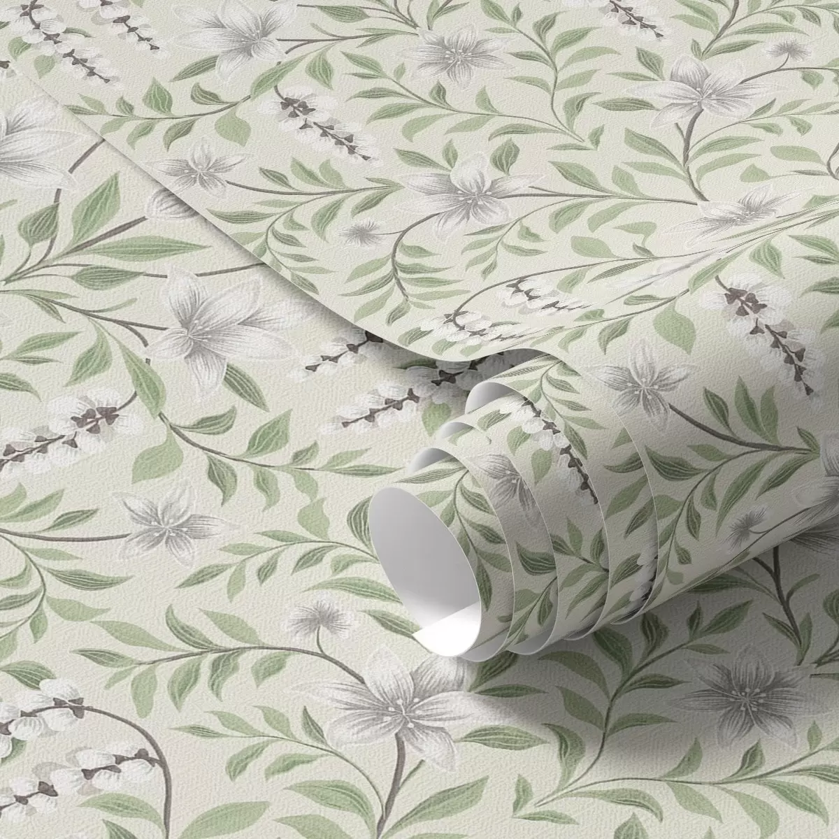 Papel tapiz Adorno ligero en forma de vid con flores blancas, simétrico Nr. a00609