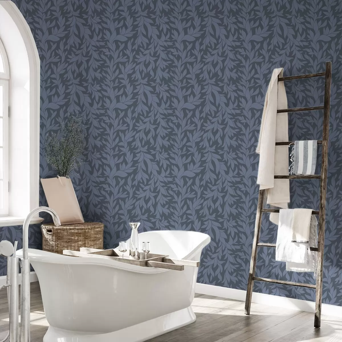 Papel tapiz Fondo azul grafito y hojas azules, trazo texturizado Nr. a00616v2