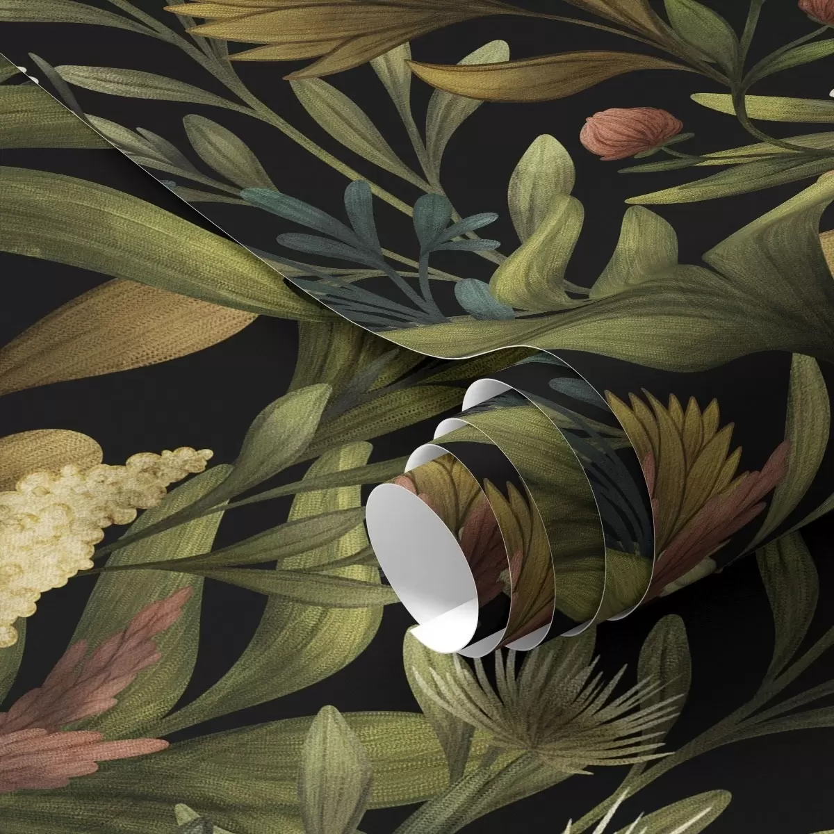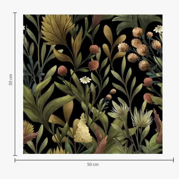 Papel tapiz Jardín botánico sobre fondo negro, cálida paleta otoñal Nr. a00619