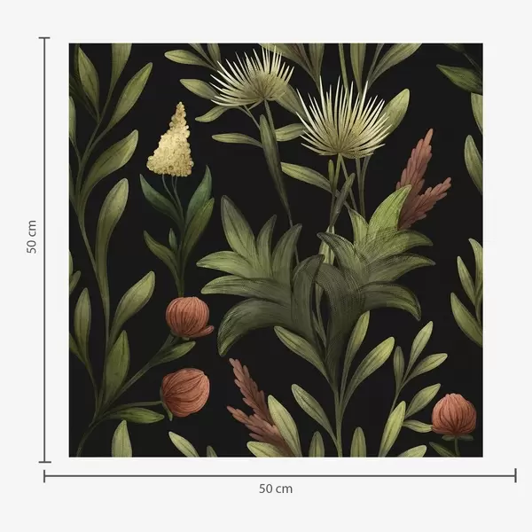 Papel tapiz Hierbas altas y flores sobre fondo negro, estampado detallado Nr. a00620