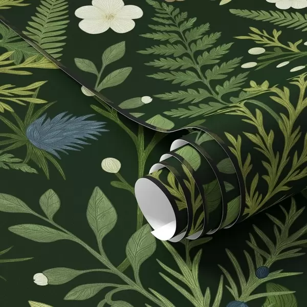 Papel tapiz Hierbas y bayas del bosque sobre un fondo verde oscuro Nr. a00621v2