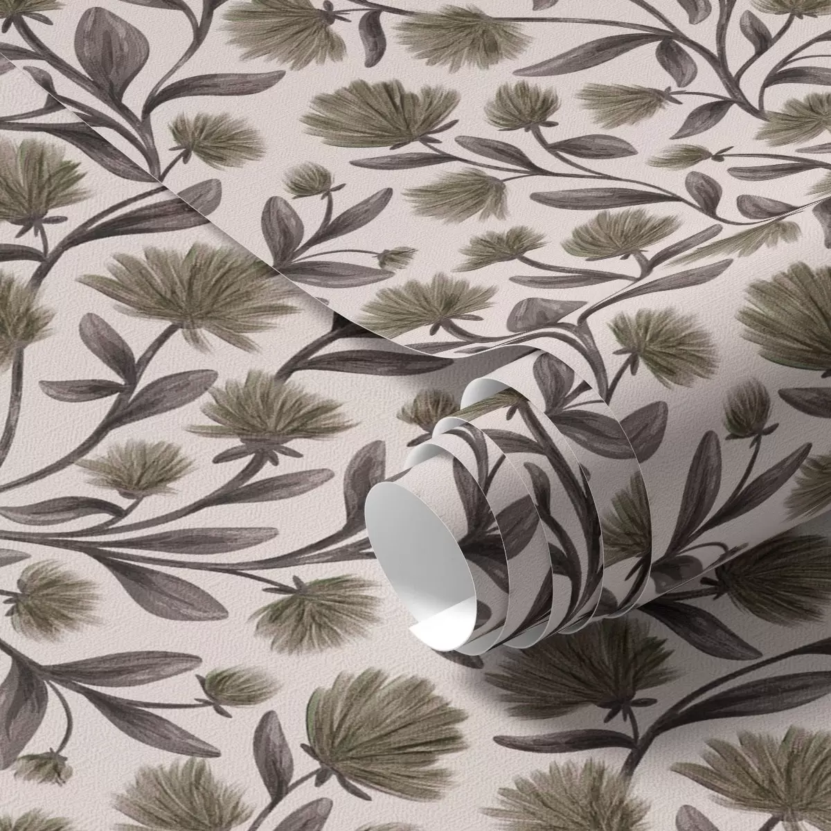 Papel tapiz Flores silvestres en tonos gris oliva sobre fondo crema Nr. a00623v1