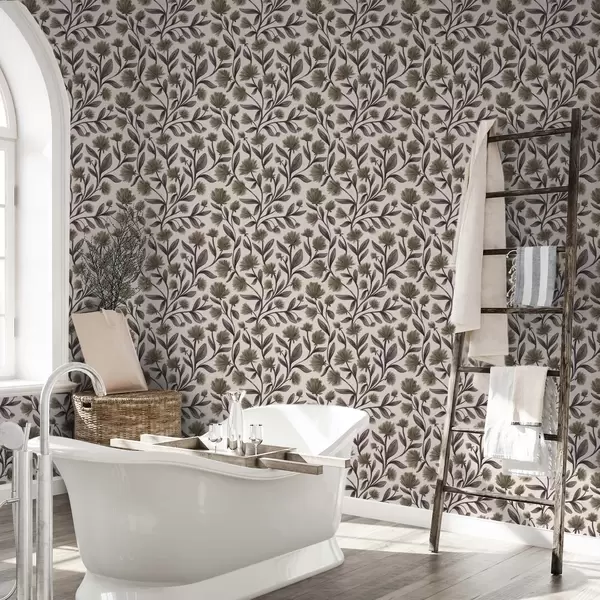 Papel tapiz Flores silvestres en tonos gris oliva sobre fondo crema Nr. a00623v1