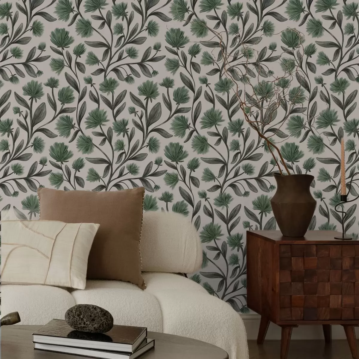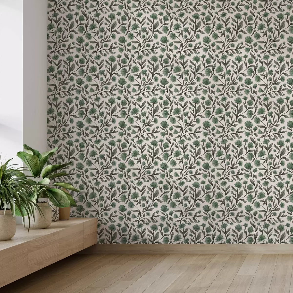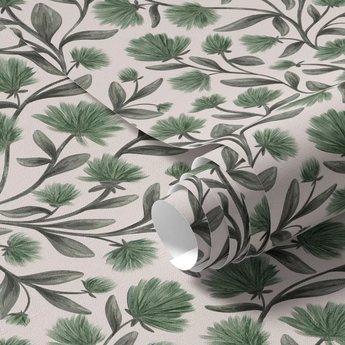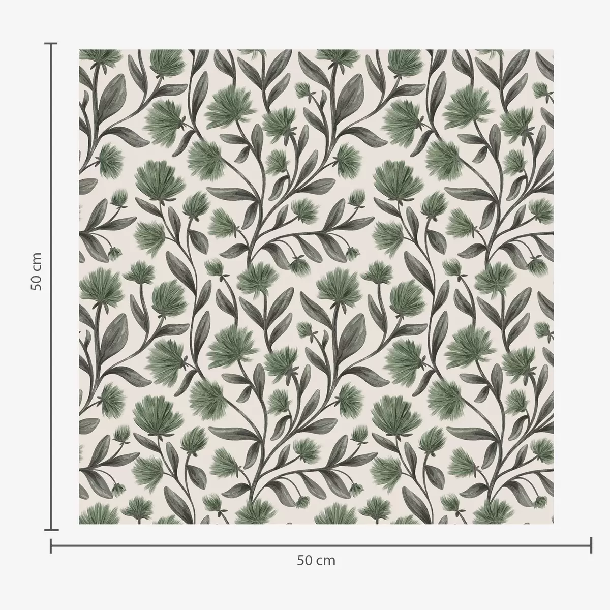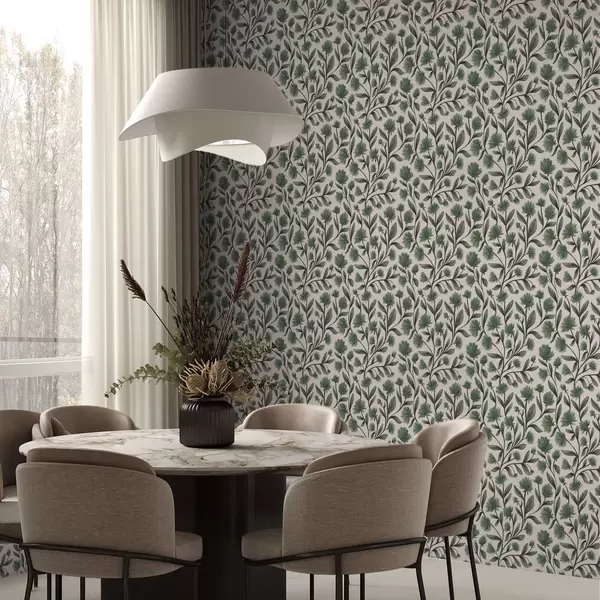 Papel tapiz Flores silvestres en una paleta verde sobre fondo crema Nr. a00623v3