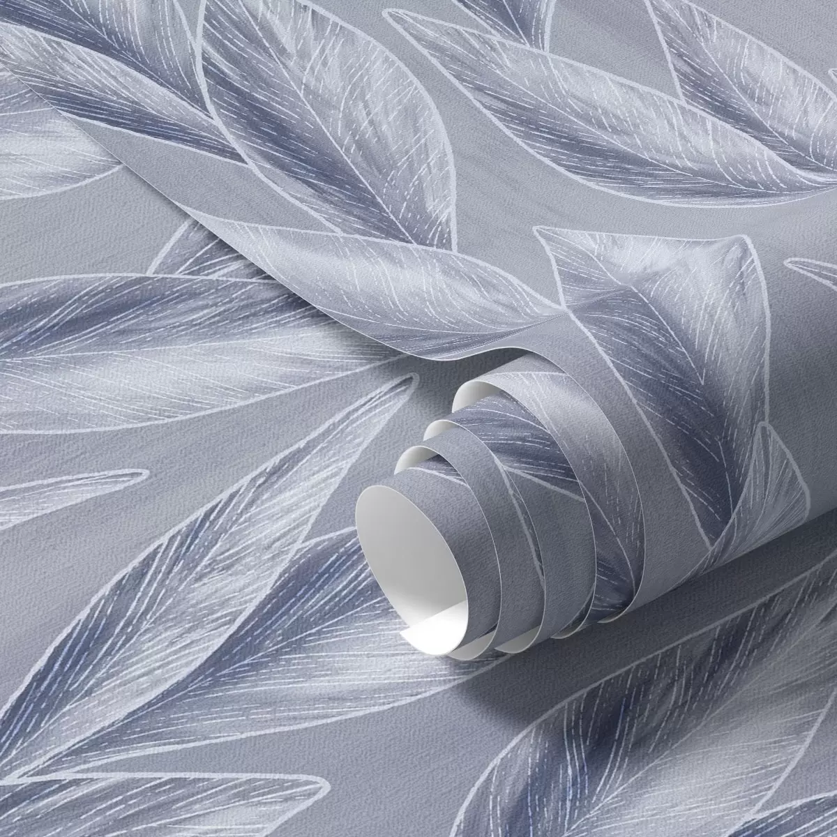 Papel tapiz Hojas azul plateadas sobre fondo gris azulado, patrón gráfico Nr. a00627
