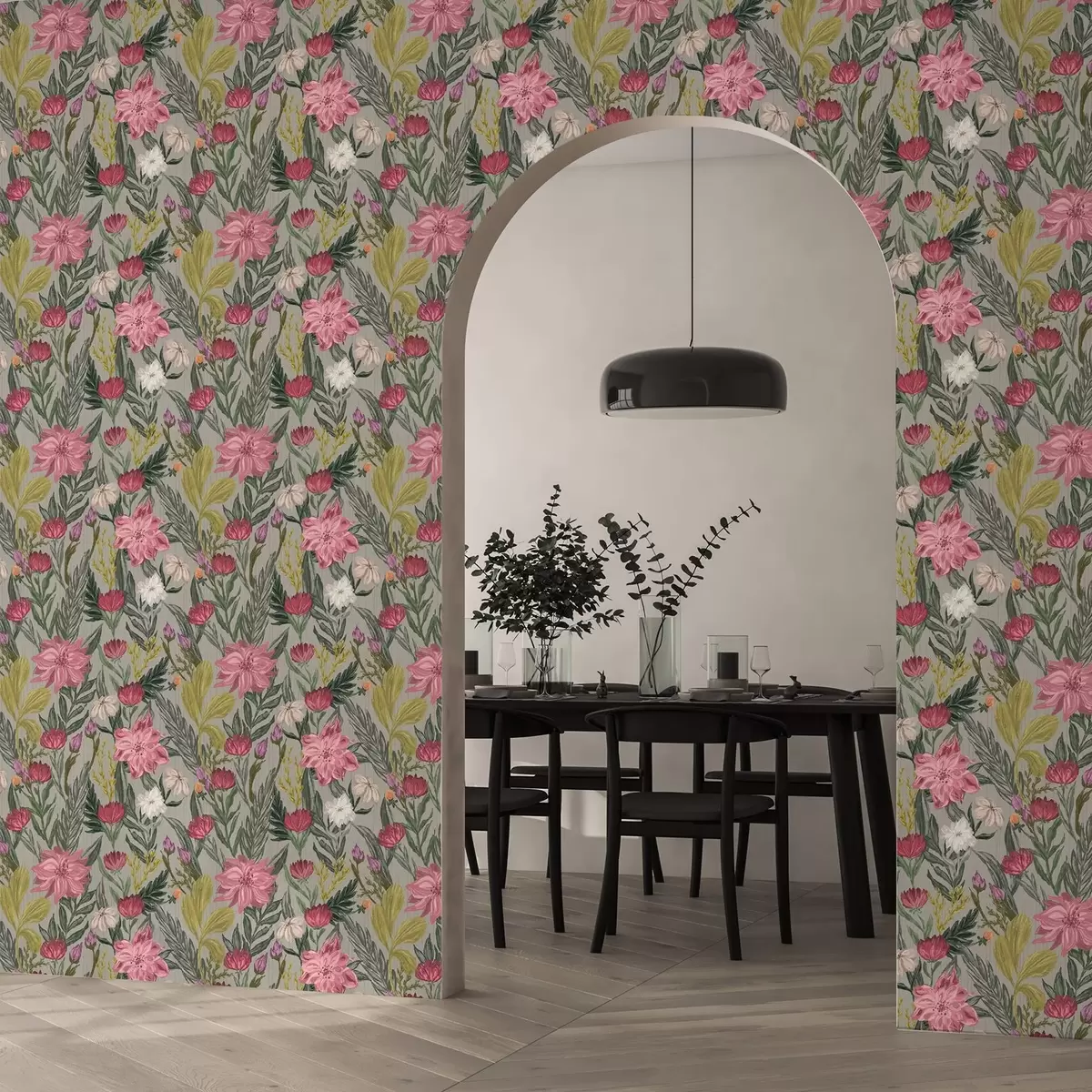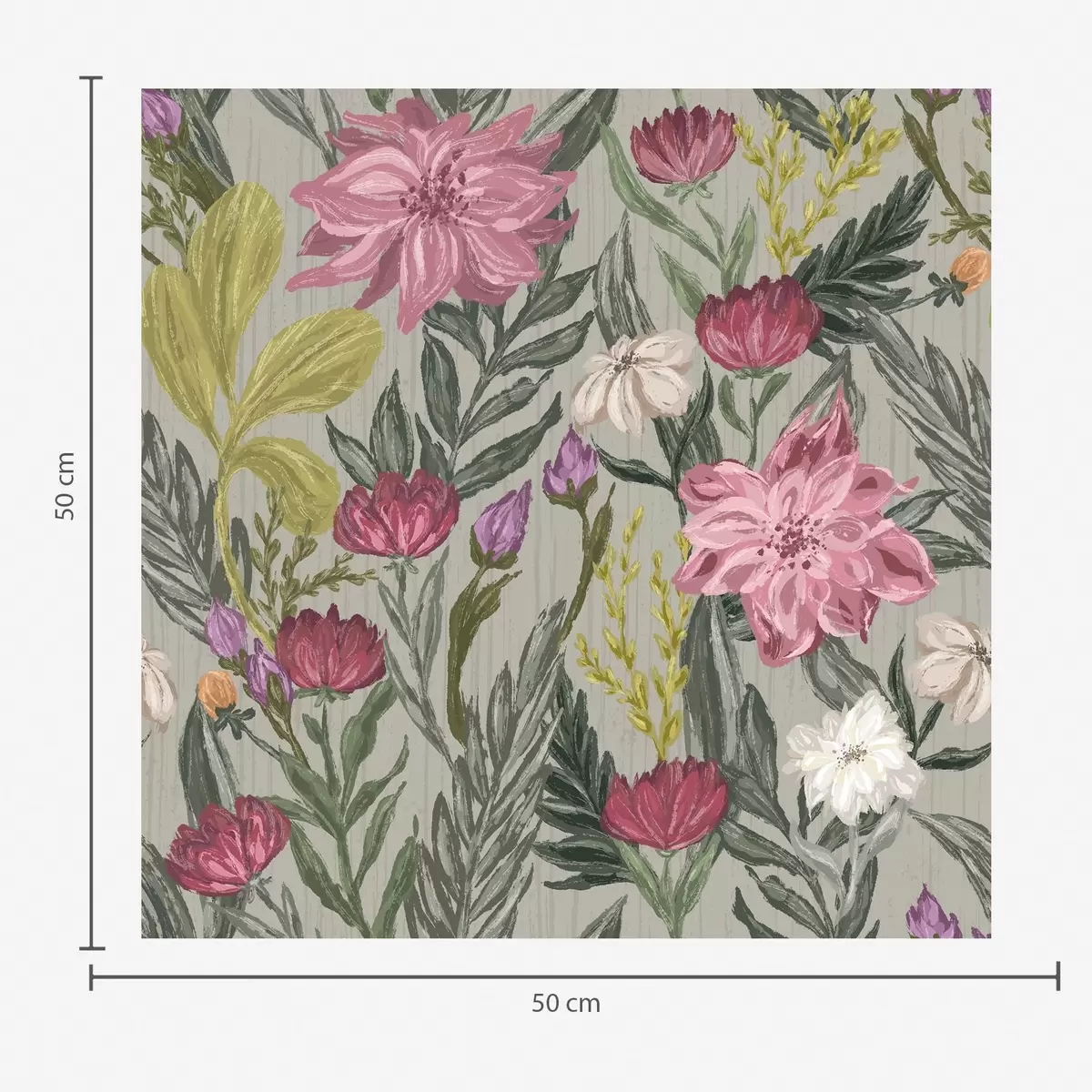 Papel tapiz Exuberantes flores rosas y crema sobre fondo gris, textura impasto Nr. a00629