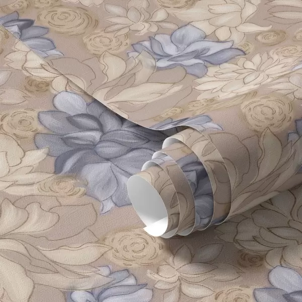 Papel tapiz Flores de color crema y azul sobre un fondo beige cálido Nr. a00634v1