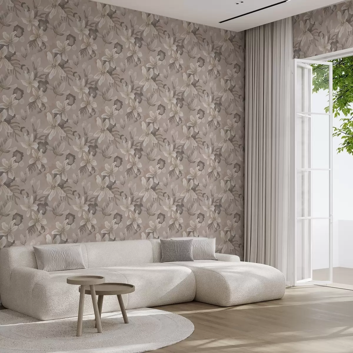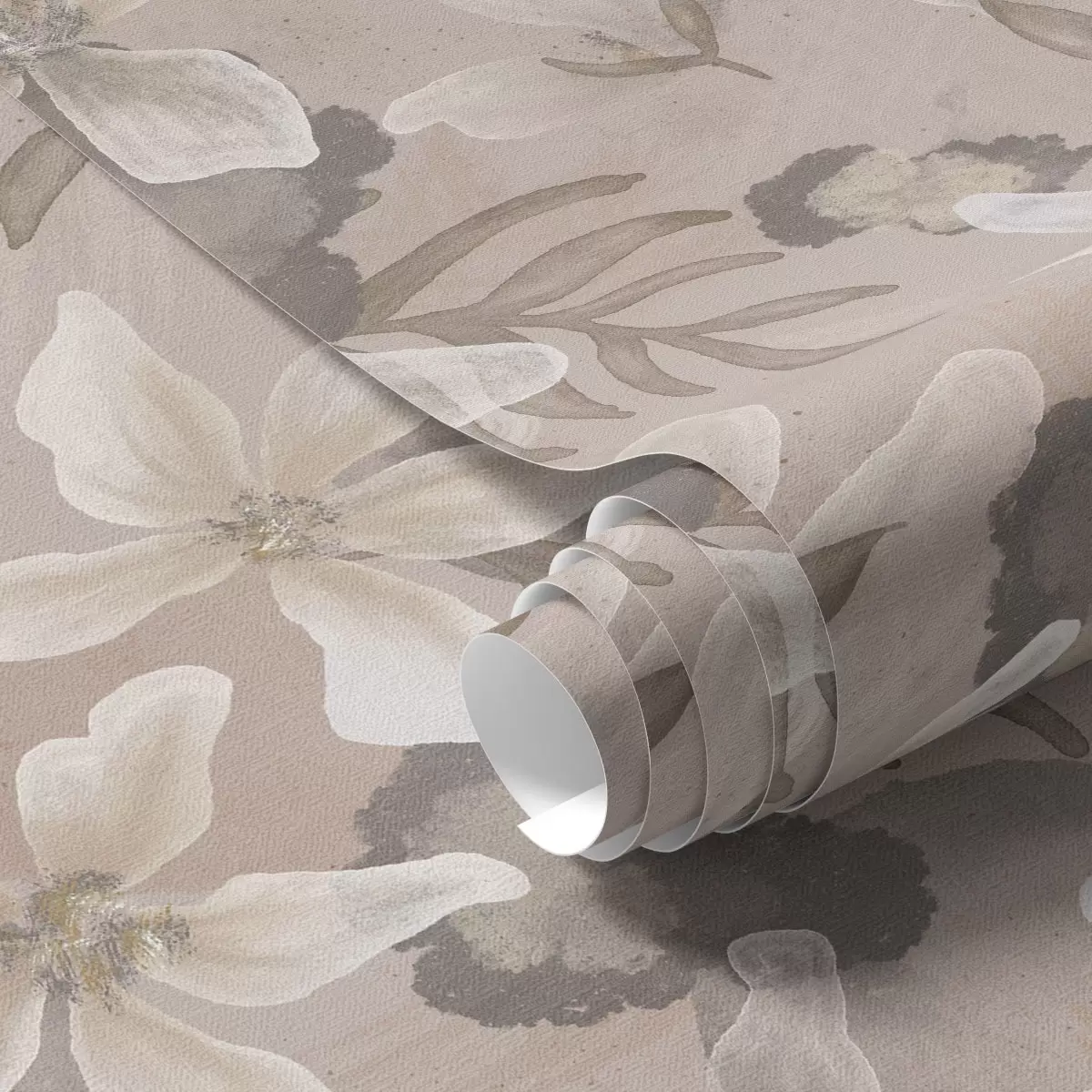 Papel tapiz Grandes flores beige con manchas abstractas de acuarela Nr. a00635