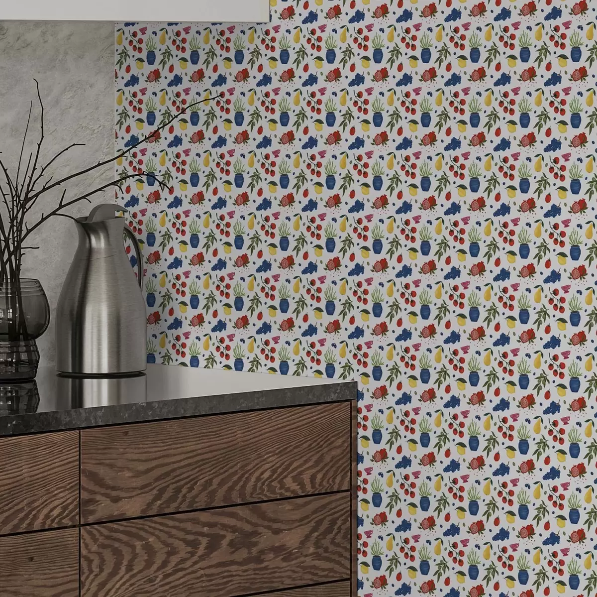 Papel tapiz Estampado botánico de frutas brillantes sobre fondo blanco Nr. a00637v1