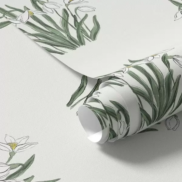 Papel tapiz Campanillas de invierno con hojas verdes sobre fondo gris claro Nr. a00651v1