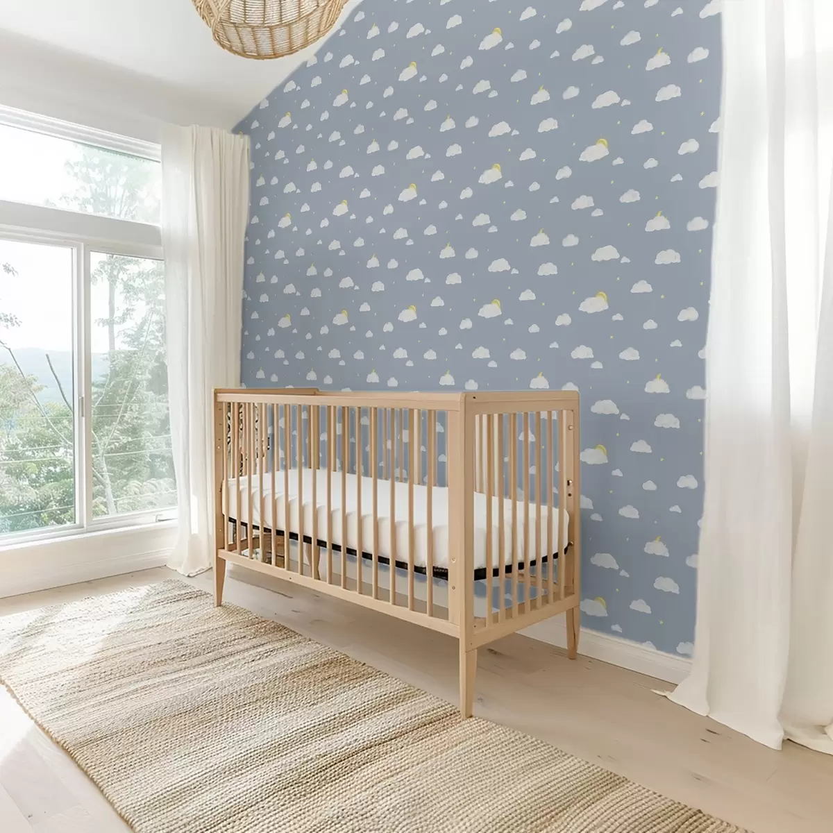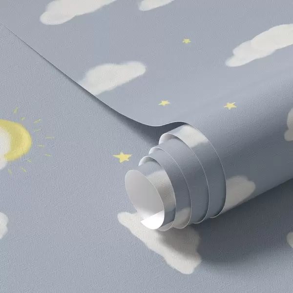 Papel tapiz Nubes suaves, estrellas y sol sobre un fondo azul Nr. a00652