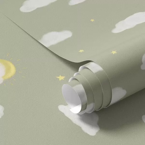 Papel tapiz Nubes suaves, estrellas y sol sobre un fondo gris verdoso Nr. a00652v1
