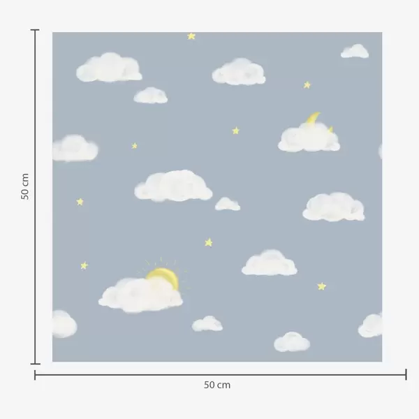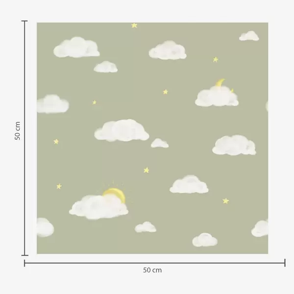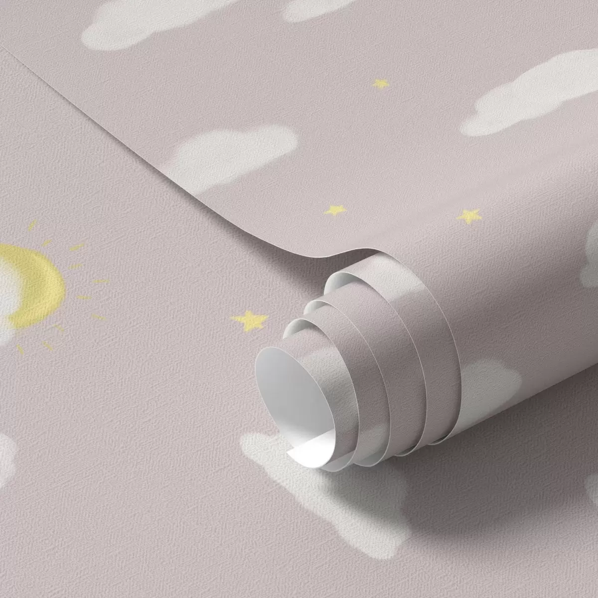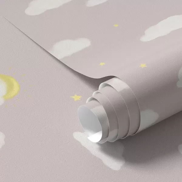 Papel tapiz Nubes suaves, estrellas y sol sobre un fondo gris rosáceo Nr. a00652v2