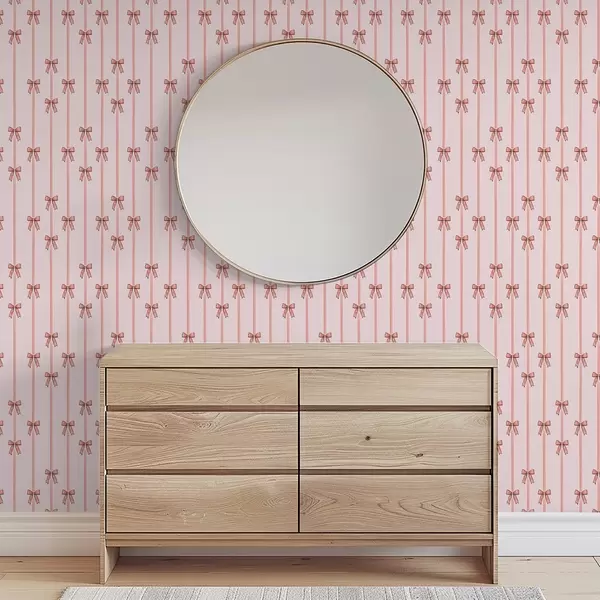 Papel tapiz Cintas verticales con lazos, fondo rosa empolvado Nr. a00653v2