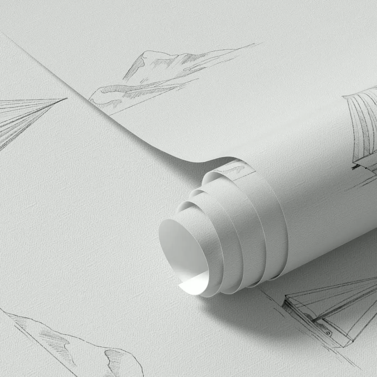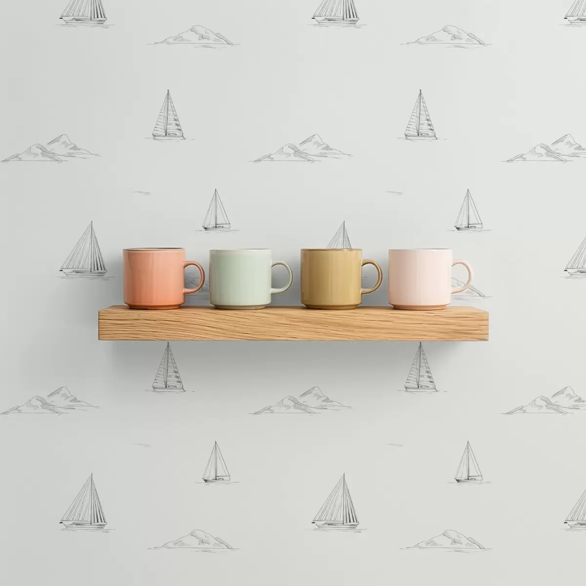 Papel tapiz Dibuja yates e islas, fondo claro. Nr. a00654v2