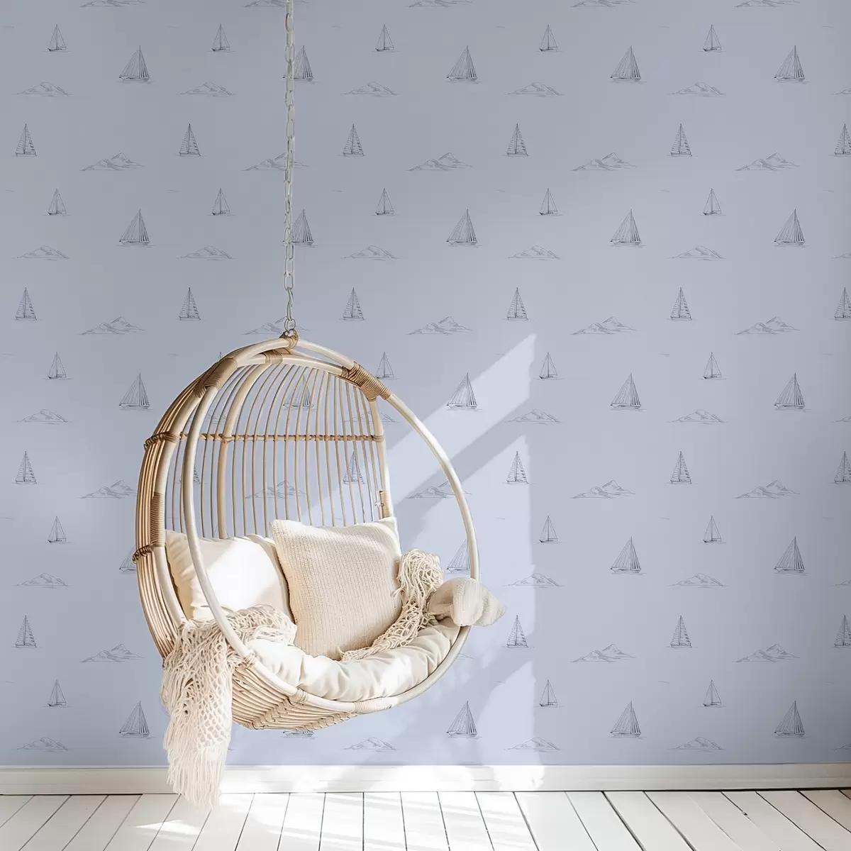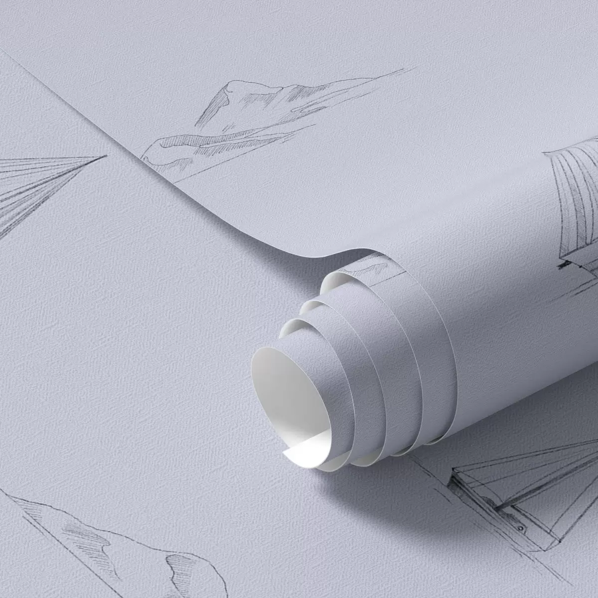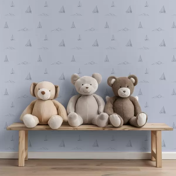 Papel tapiz Bocetos de yates e islas, fondo azul Nr. a00654v3