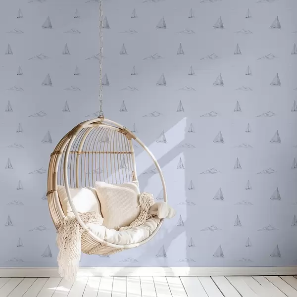 Papel tapiz Bocetos de yates e islas, fondo azul Nr. a00654v3