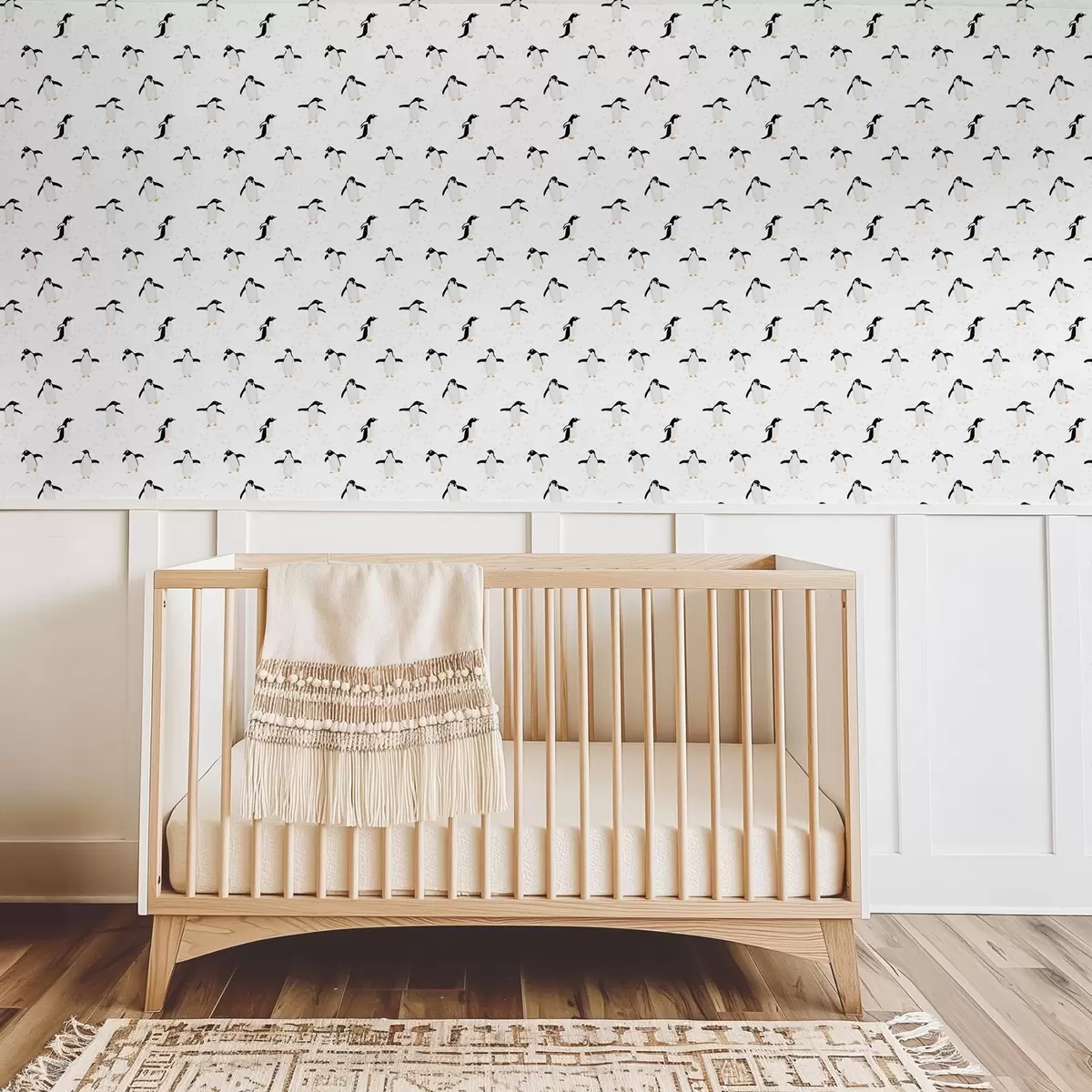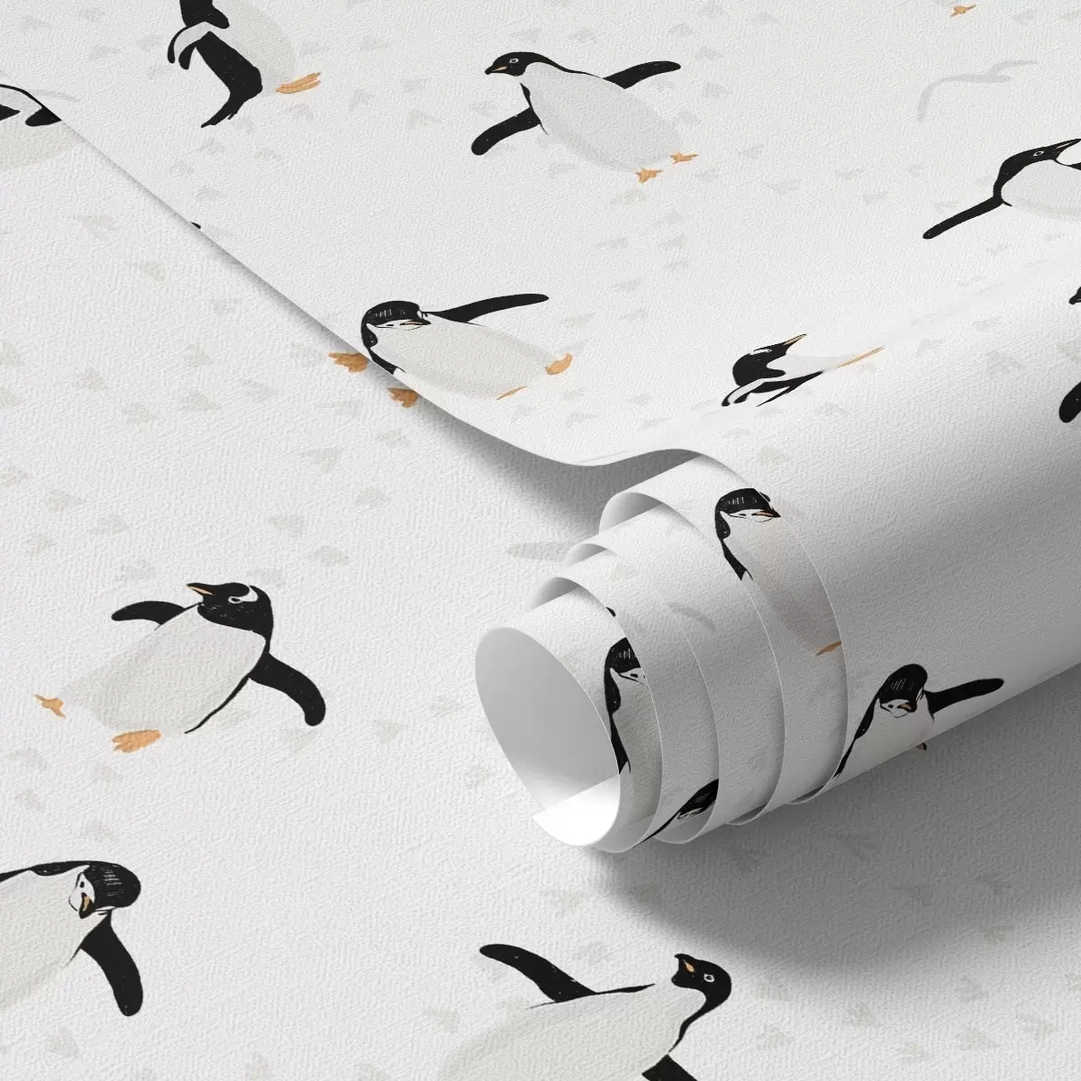 Papel tapiz Pingüinos sobre fondo blanco con huellas Nr. a00655v1