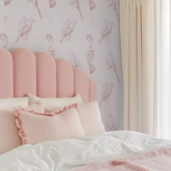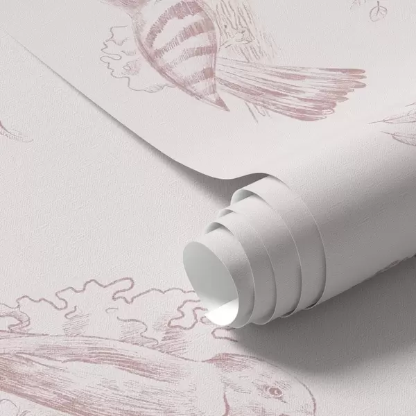Papel tapiz Toile de pájaros: bocetos de pájaros, fondo rosa suave Nr. a00656